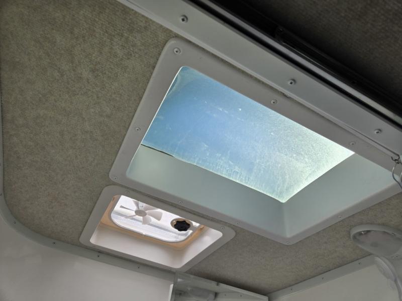 With any Arctic Fox truck camper by Northwood, there is a fully welded thick wall aluminum tube frame with solid core anchor blocking that gives substantial strength at the main connection points, and a heavy duty basement floor frame with joists that support the heated holding tanks under the basement. These 4 Season all weather campers allow you to camp where ever and whenever you decide to set up camp. The electric jacks with 6-function remote makes setting up easy, and the exterior shower allows you to keep the dirt outside. Inside you will find a cathedral arched ceiling for a spacious interior, solid wood cabinetry, a Dayliter kitchen skylight with shade to choose when you want more natural lighting inside, a porcelain, foot-pedal toilet and bath skylight, and roller bearing drawer guides.