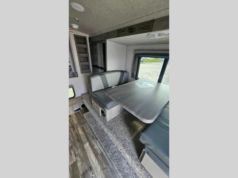 Camping with your own truck and maybe towing a fishing boat sounds pretty good, right? You can easily setup this truck camper and head out with your boat to return to comfortable accommodations as you relax at the campgrounds. You can sit at the dinette and you can convert this furniture into a 42" x 76" sleeping area. There is an optional bunk above if you might need more sleeping space for family and friends. Be sure to cook up your catch for the day using the three burner cooktop and microwave oven. The 58" x 80" NW TruRest queen mattress with a bedspread up front will allow you to get a good night's rest, and there is plenty of storage for your clothing and others' belongings with three wardrobes. And don't forget to put your dirty clothes in the hampers.