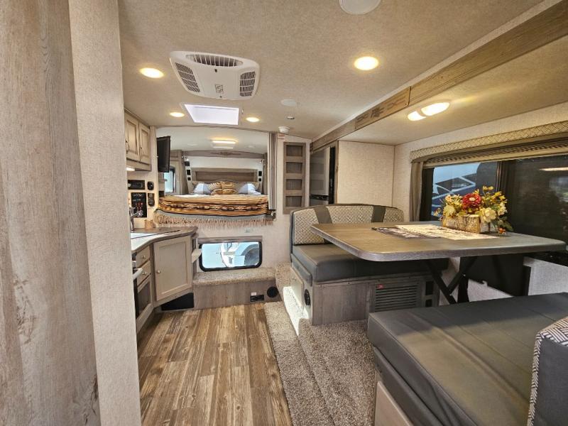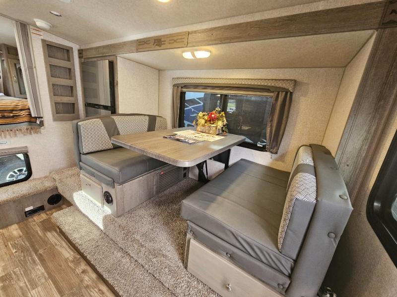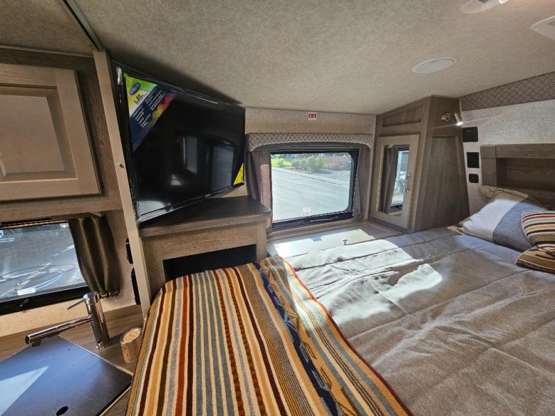 Camping with your own truck and maybe towing a fishing boat sounds pretty good, right? You can easily setup this truck camper and head out with your boat to return to comfortable accommodations as you relax at the campgrounds. You can sit at the dinette and you can convert this furniture into a 42" x 76" sleeping area. There is an optional bunk above if you might need more sleeping space for family and friends. Be sure to cook up your catch for the day using the three burner cooktop and microwave oven. The 58" x 80" NW TruRest queen mattress with a bedspread up front will allow you to get a good night's rest, and there is plenty of storage for your clothing and others' belongings with three wardrobes. And don't forget to put your dirty clothes in the hampers.