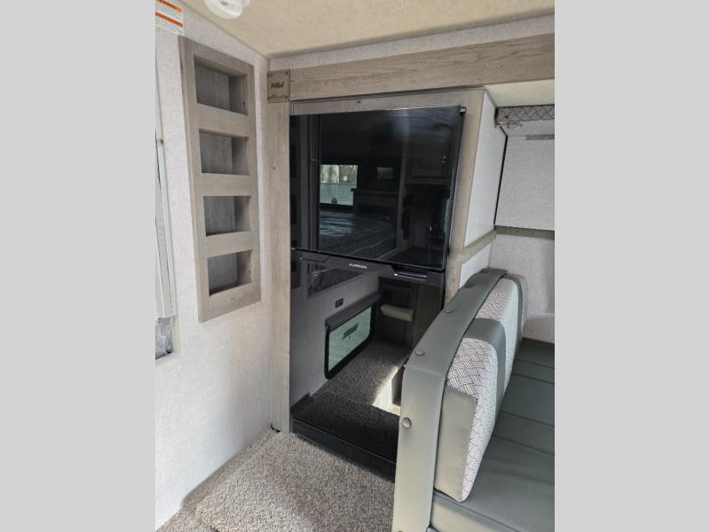 Camping with your own truck and maybe towing a fishing boat sounds pretty good, right? You can easily setup this truck camper and head out with your boat to return to comfortable accommodations as you relax at the campgrounds. You can sit at the dinette and you can convert this furniture into a 42" x 76" sleeping area. There is an optional bunk above if you might need more sleeping space for family and friends. Be sure to cook up your catch for the day using the three burner cooktop and microwave oven. The 58" x 80" NW TruRest queen mattress with a bedspread up front will allow you to get a good night's rest, and there is plenty of storage for your clothing and others' belongings with three wardrobes. And don't forget to put your dirty clothes in the hampers.