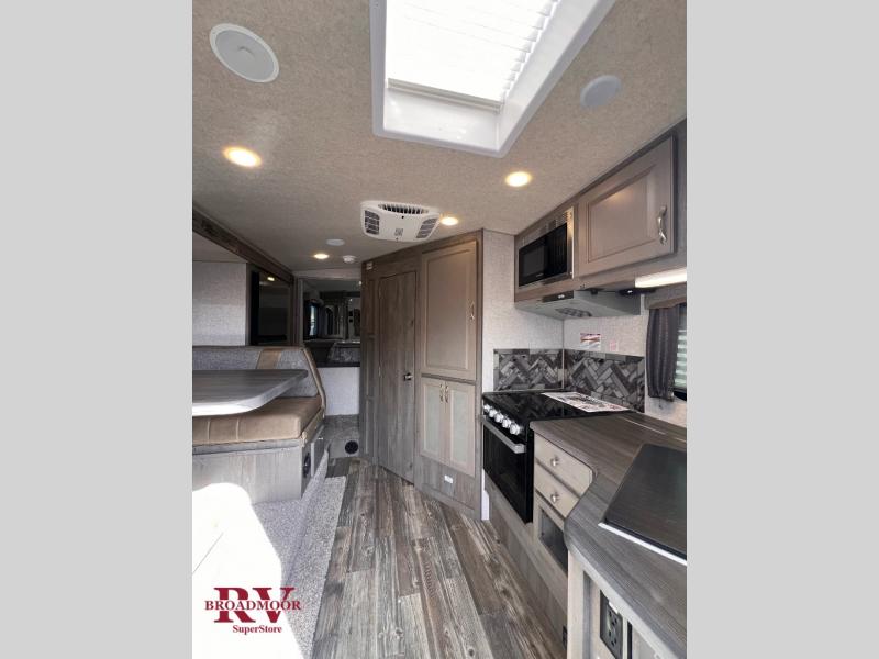 When you like to travel with your truck and your boat or trailer, this truck camper makes sense, plus gives you all the comforts you will need after a day on the water or playing around camp. The booth dinette, 12V refrigerator plus the pantry are within a slide giving you more floor space to move from the rear entry to the front bed where you can sleep like royalty on the NW TruRest mattress. There are three wardrobes and two hampers up front, and a space to add a TV option. Extra sleeping space is found on the converted dinette and you can add an optional bunk, plus you will find more storage in overhead cabinets and another wardrobe.