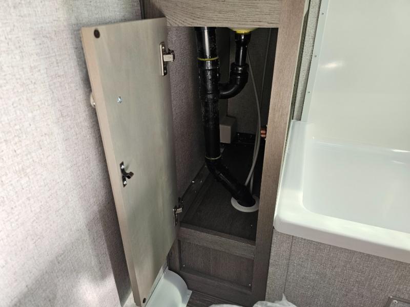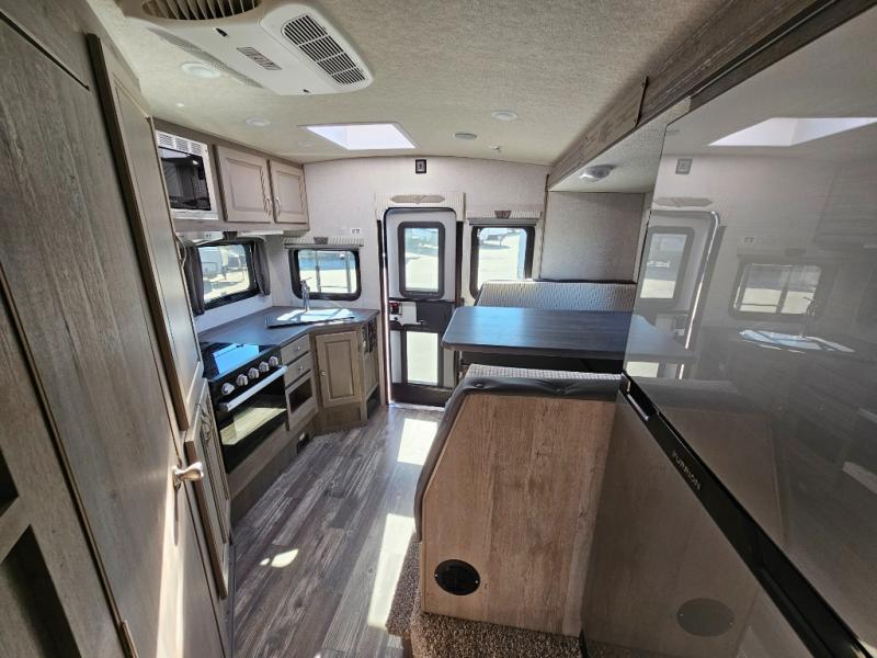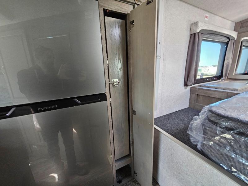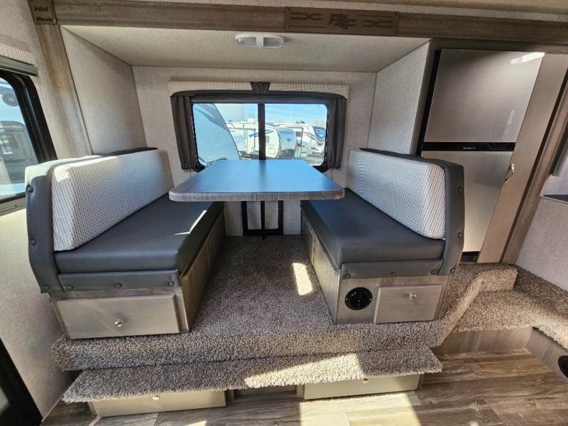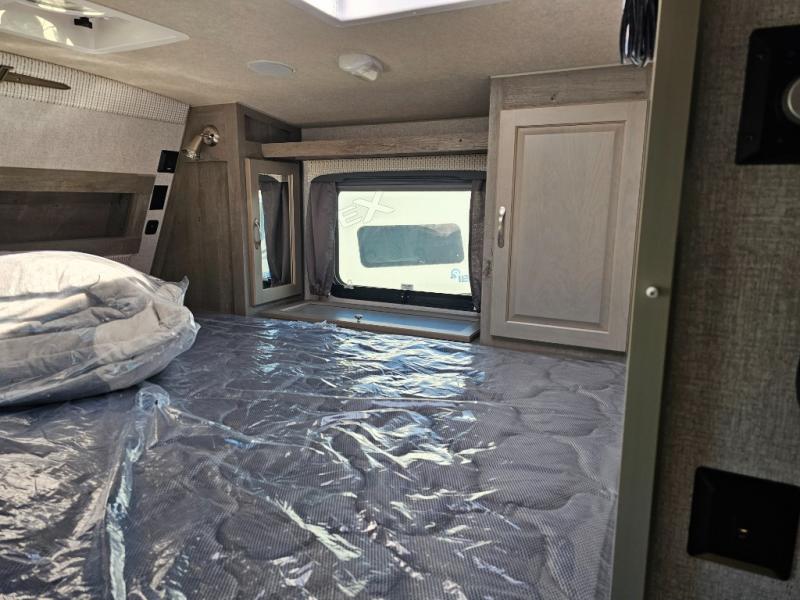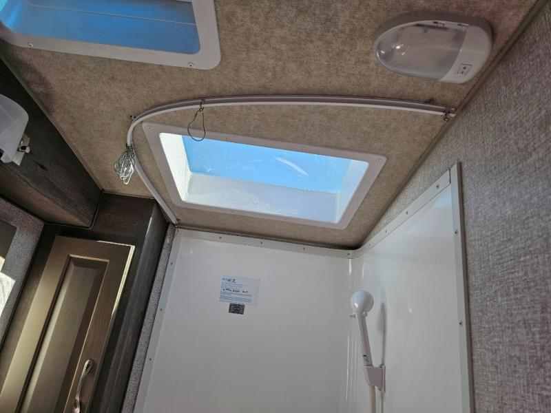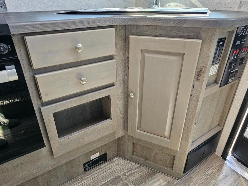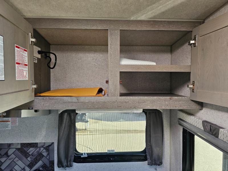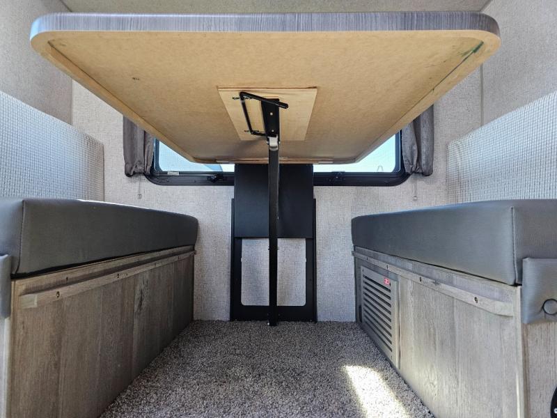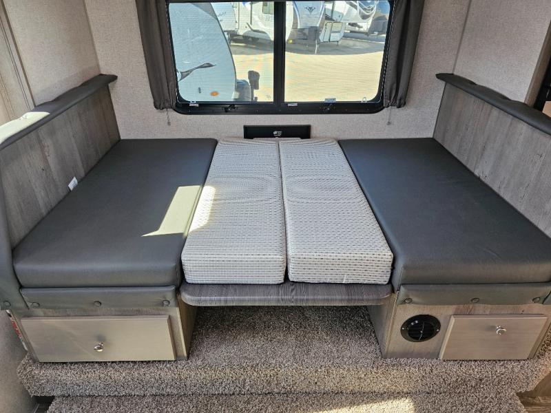 When you like to travel with your truck and your boat or trailer, this truck camper makes sense, plus gives you all the comforts you will need after a day on the water or playing around camp. The booth dinette, 12V refrigerator plus the pantry are within a slide giving you more floor space to move from the rear entry to the front bed where you can sleep like royalty on the NW TruRest mattress. There are three wardrobes and two hampers up front, and a space to add a TV option. Extra sleeping space is found on the converted dinette and you can add an optional bunk, plus you will find more storage in overhead cabinets and another wardrobe.