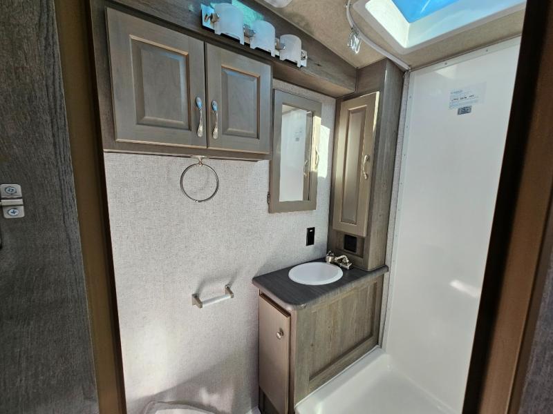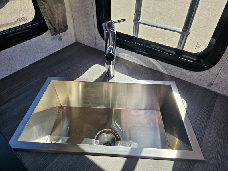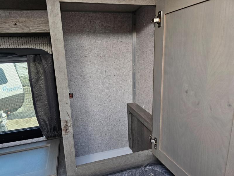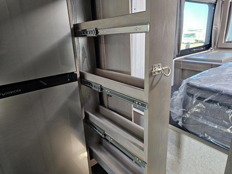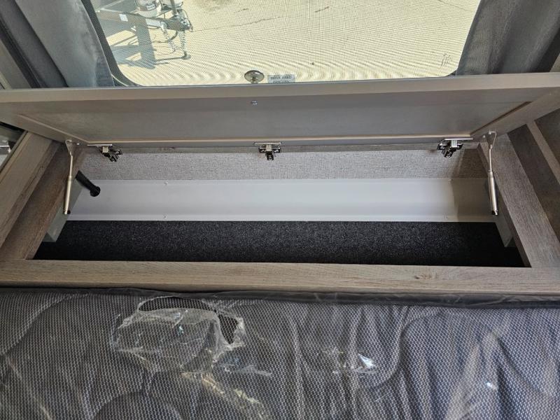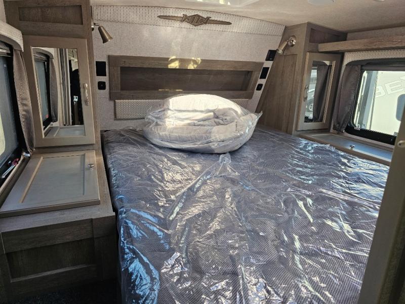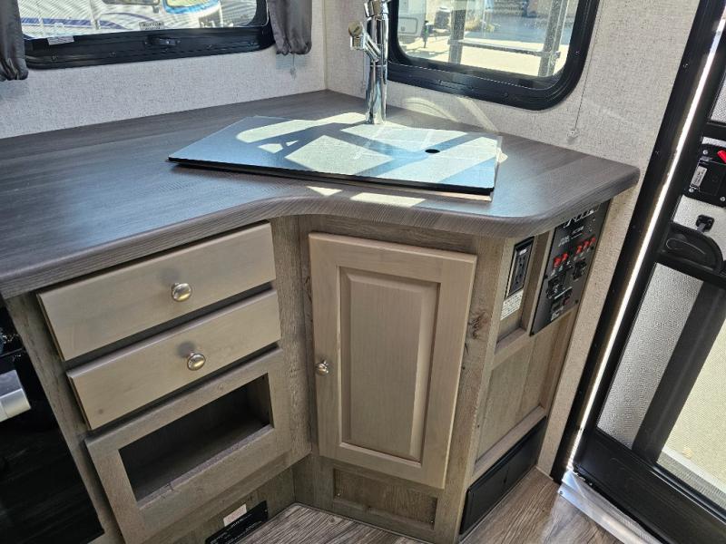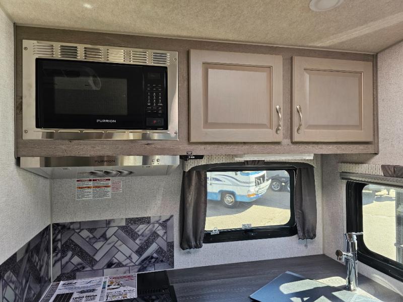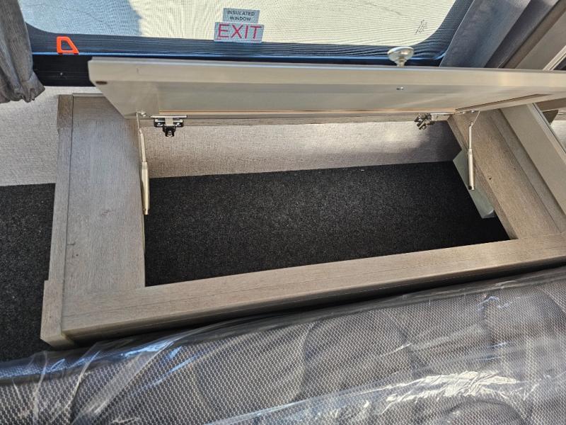 When you like to travel with your truck and your boat or trailer, this truck camper makes sense, plus gives you all the comforts you will need after a day on the water or playing around camp. The booth dinette, 12V refrigerator plus the pantry are within a slide giving you more floor space to move from the rear entry to the front bed where you can sleep like royalty on the NW TruRest mattress. There are three wardrobes and two hampers up front, and a space to add a TV option. Extra sleeping space is found on the converted dinette and you can add an optional bunk, plus you will find more storage in overhead cabinets and another wardrobe.