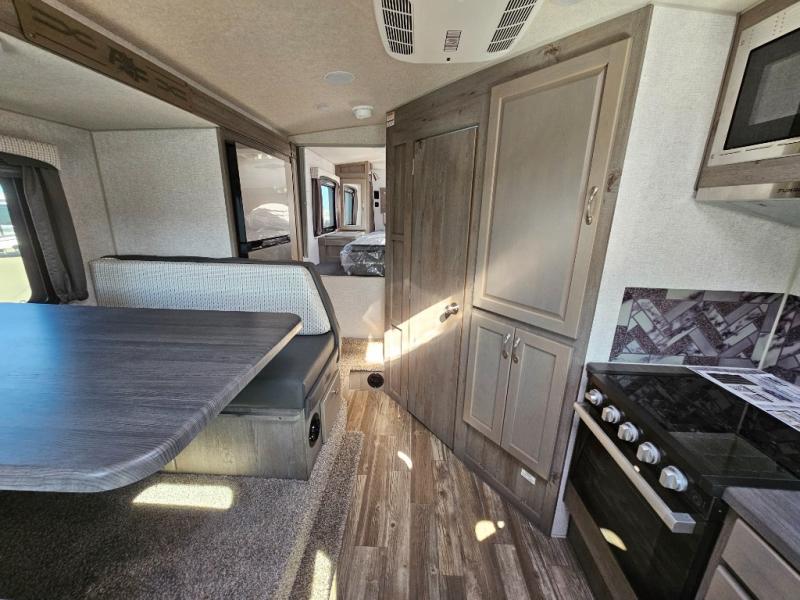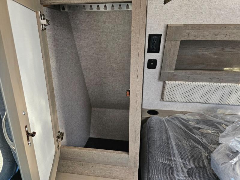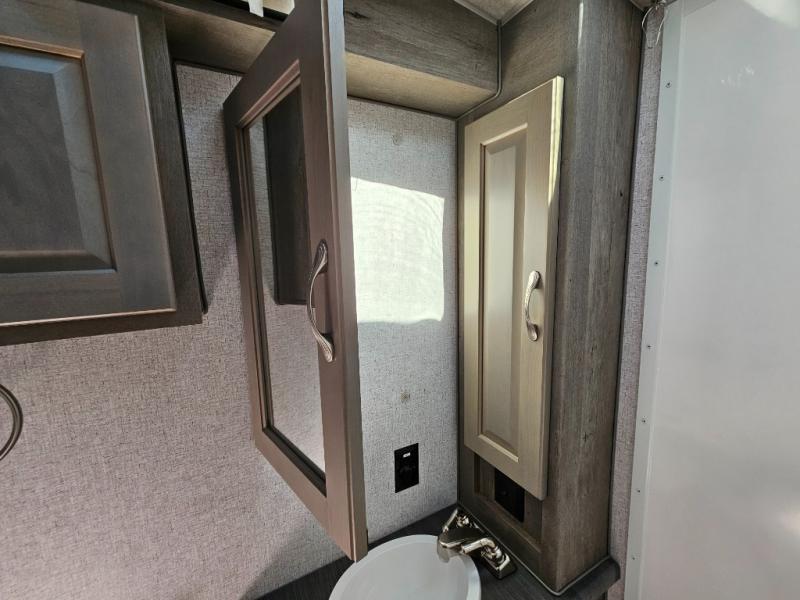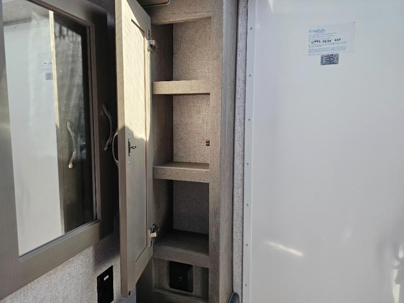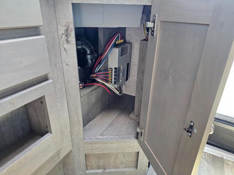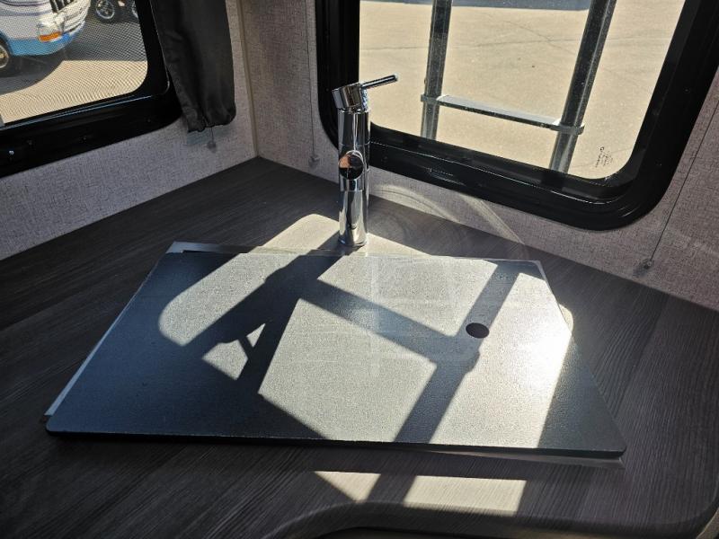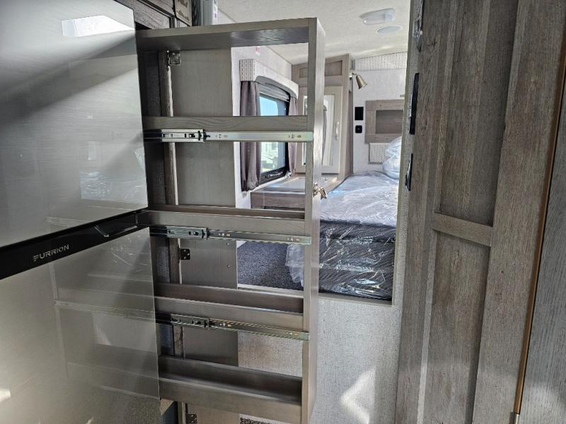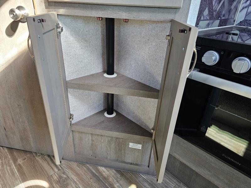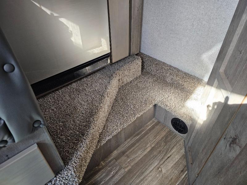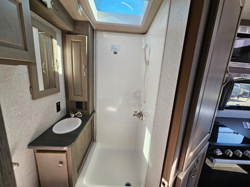 When you like to travel with your truck and your boat or trailer, this truck camper makes sense, plus gives you all the comforts you will need after a day on the water or playing around camp. The booth dinette, 12V refrigerator plus the pantry are within a slide giving you more floor space to move from the rear entry to the front bed where you can sleep like royalty on the NW TruRest mattress. There are three wardrobes and two hampers up front, and a space to add a TV option. Extra sleeping space is found on the converted dinette and you can add an optional bunk, plus you will find more storage in overhead cabinets and another wardrobe.