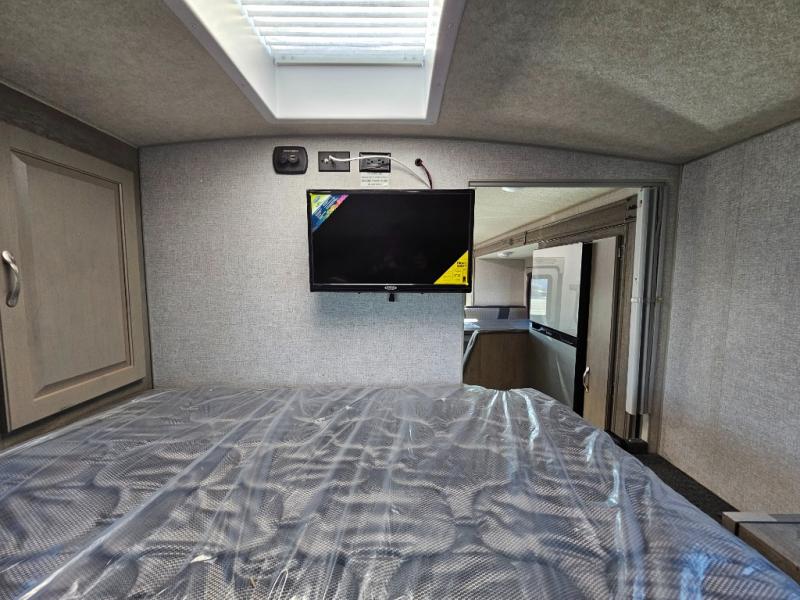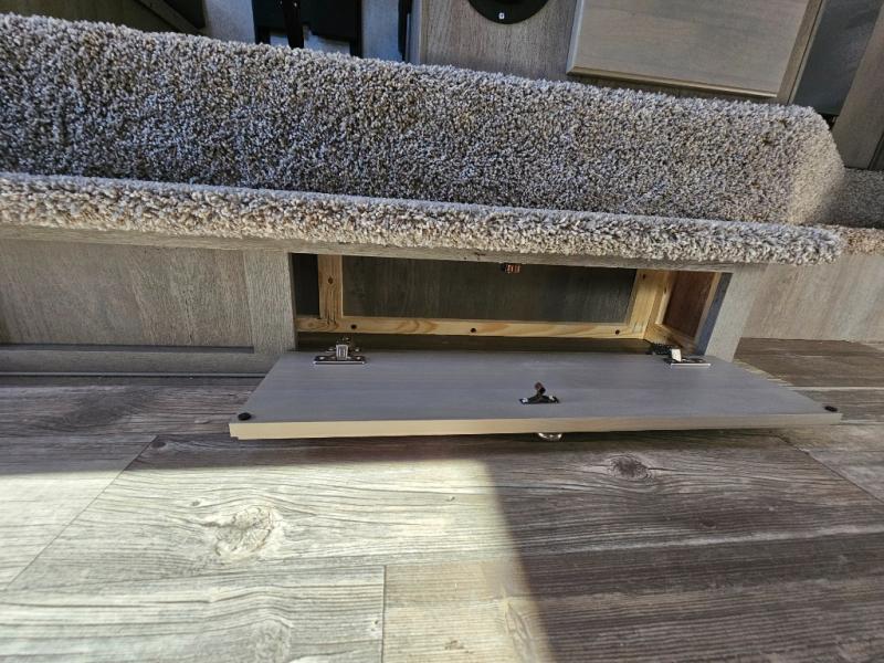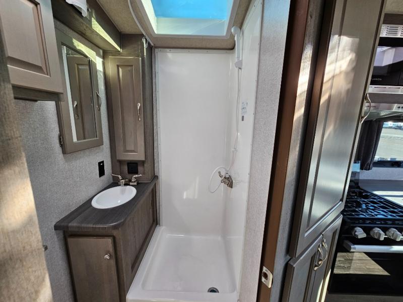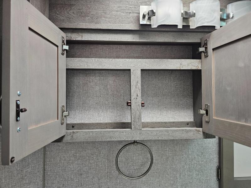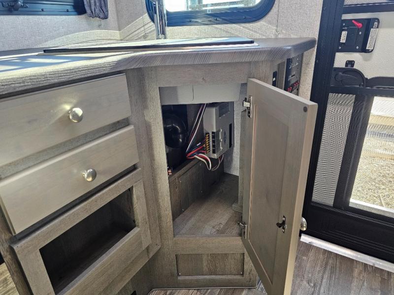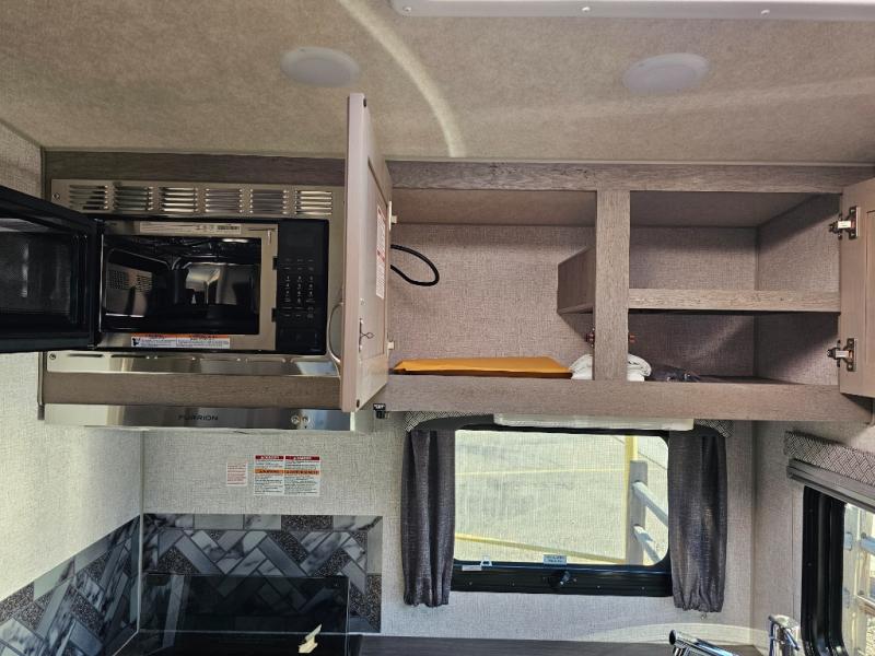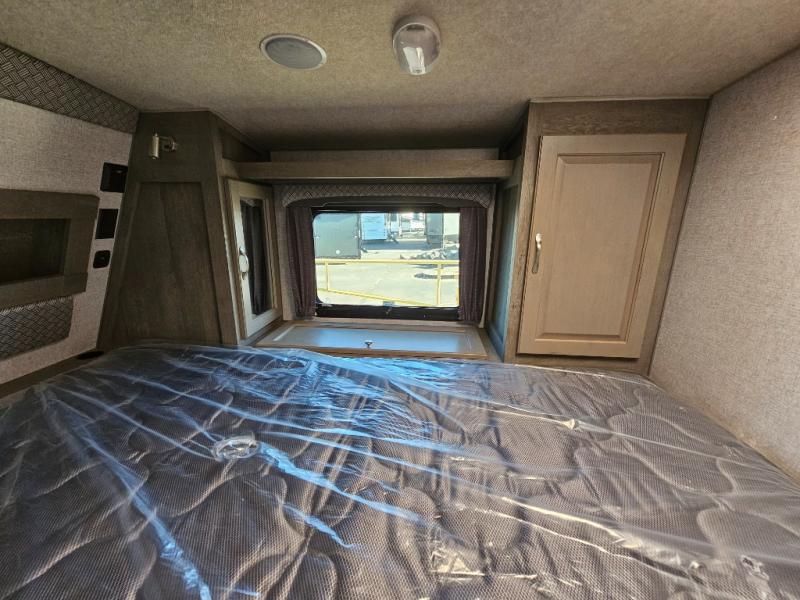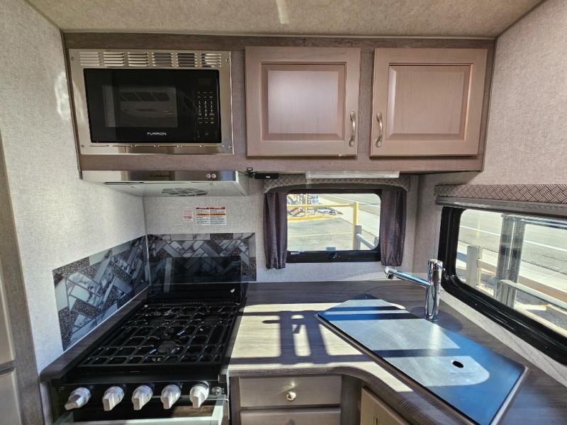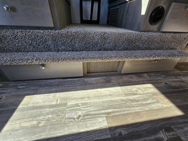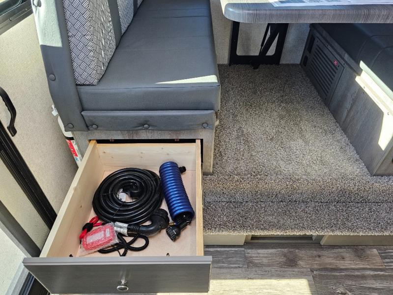 When you like to travel with your truck and your boat or trailer, this truck camper makes sense, plus gives you all the comforts you will need after a day on the water or playing around camp. The booth dinette, 12V refrigerator plus the pantry are within a slide giving you more floor space to move from the rear entry to the front bed where you can sleep like royalty on the NW TruRest mattress. There are three wardrobes and two hampers up front, and a space to add a TV option. Extra sleeping space is found on the converted dinette and you can add an optional bunk, plus you will find more storage in overhead cabinets and another wardrobe.