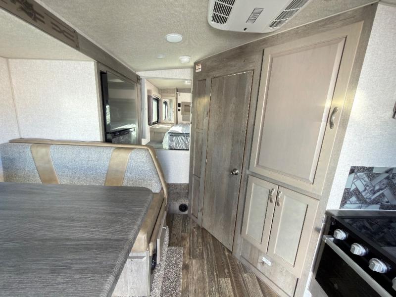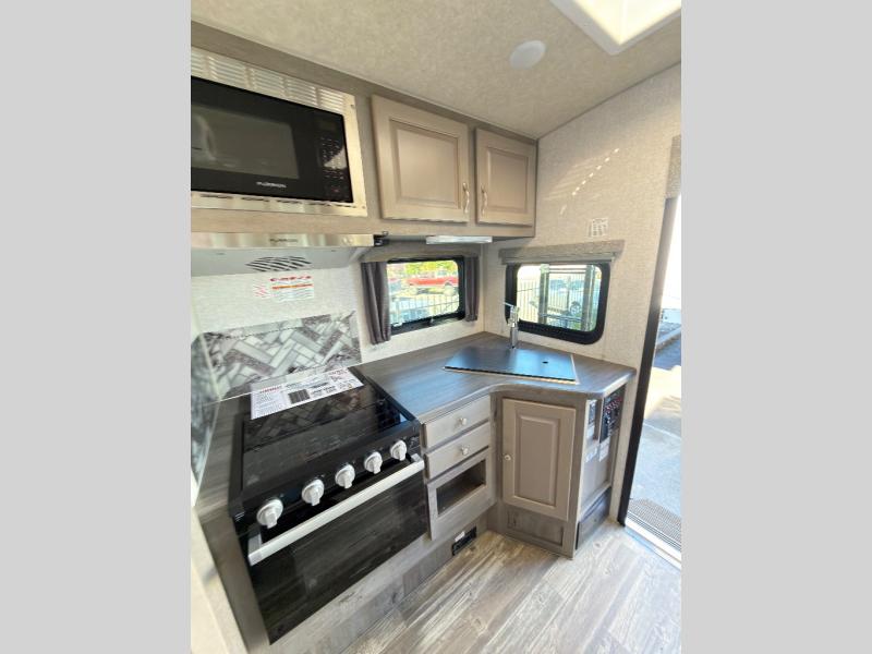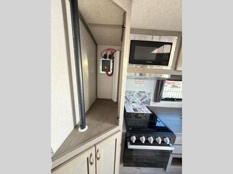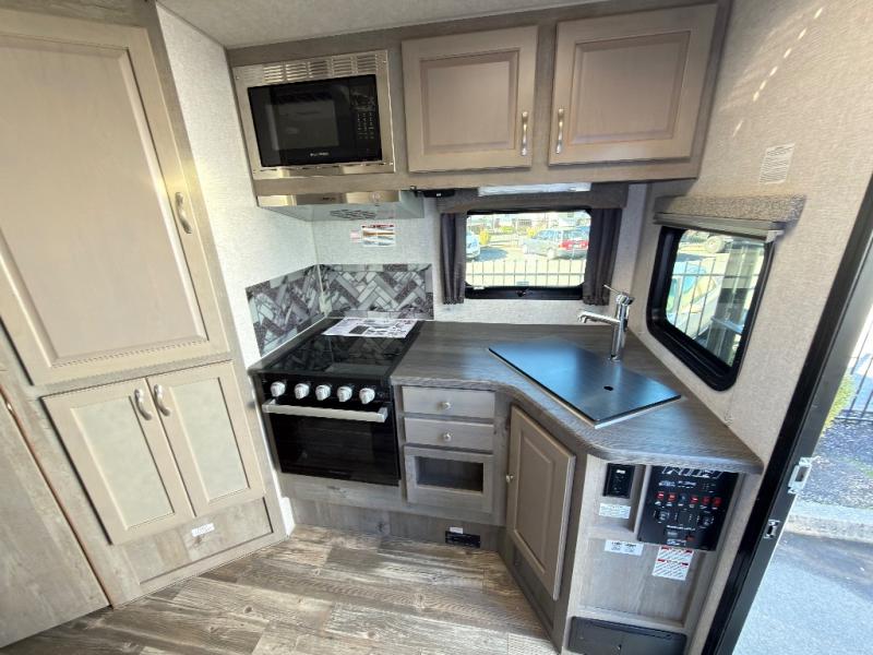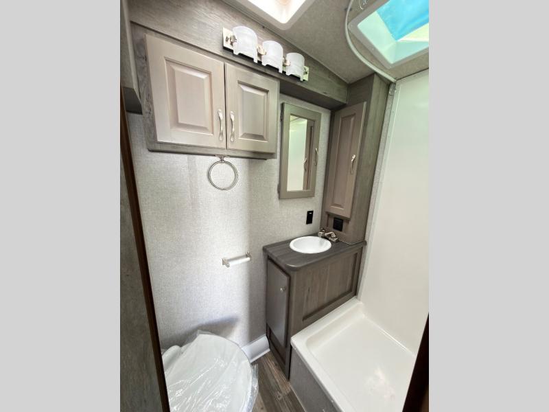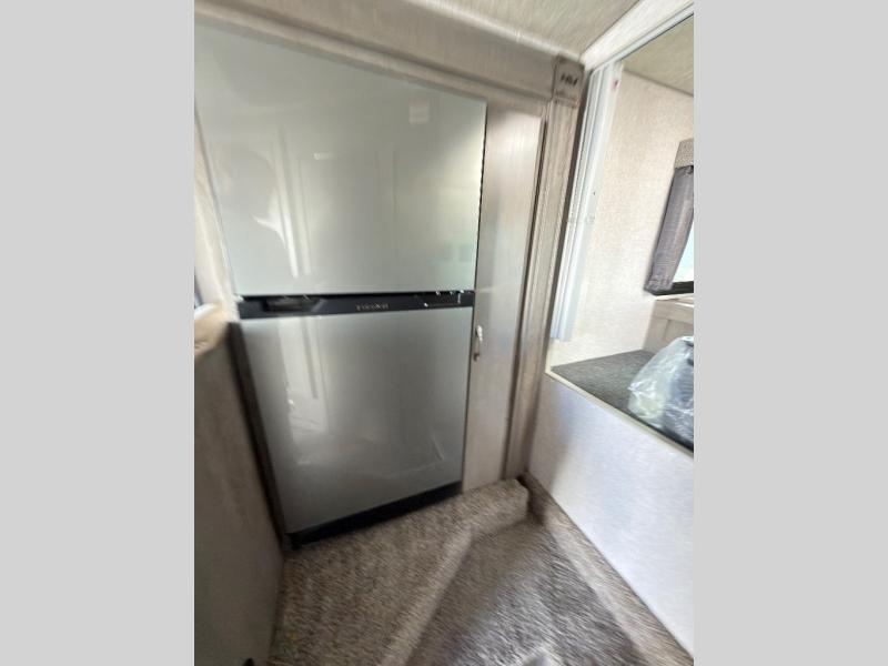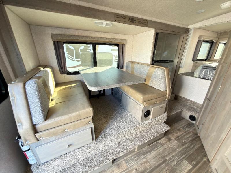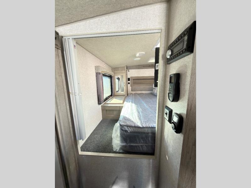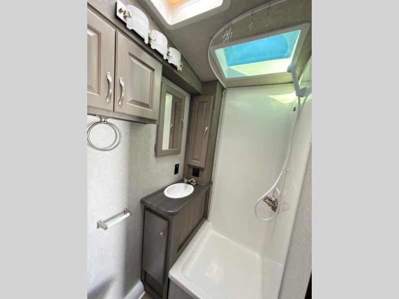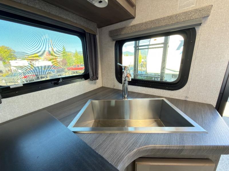 When you like to travel with your truck and your boat or trailer, this truck camper makes sense, plus gives you all the comforts you will need after a day on the water or playing around camp. The booth dinette, 12V refrigerator plus the pantry are within a slide giving you more floor space to move from the rear entry to the front bed where you can sleep like royalty on the NW TruRest mattress. There are three wardrobes and two hampers up front, and a space to add a TV option. Extra sleeping space is found on the converted dinette and you can add an optional bunk, plus you will find more storage in overhead cabinets and another wardrobe.