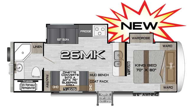 With a thoughtfully designed mid-kitchen layout, spacious slide-out, and premium finishes throughout, the Edge 26MK offers a perfect balance of function, luxury, and livability.