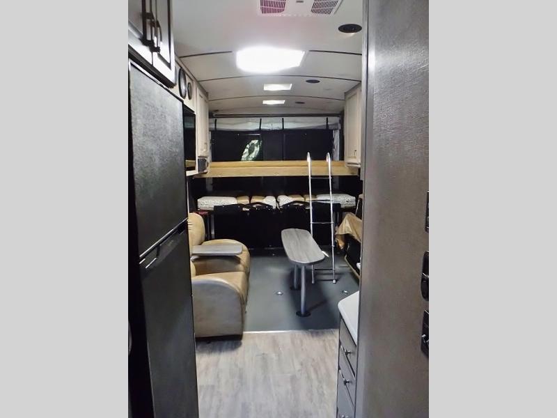 The Northwood Desert Fox toy hauler is a legacy of quality that is built to last through years of use and all types of weather! There is Northwood built Ironhorse chassis to provide a strong foundation, and there are shocks on all four 16" aluminum wheels. Stabilizer jacks keep your trailer firmly in place while you are set up at camp, and there is an exterior shower to help you rinse off the mud from your four-wheelers. A motion-sensor exterior work light will scare away intruders, and the LED outside speakers will provide a good time. You can control everything from the interior command center, and the SolX 4 - 400 Watt solar package is an excellent power provider.