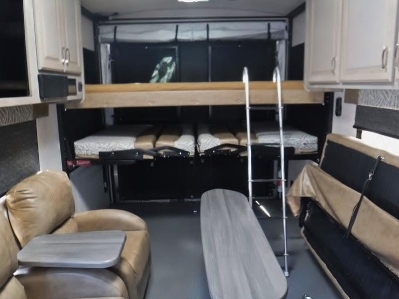 The Northwood Desert Fox toy hauler is a legacy of quality that is built to last through years of use and all types of weather! There is Northwood built Ironhorse chassis to provide a strong foundation, and there are shocks on all four 16" aluminum wheels. Stabilizer jacks keep your trailer firmly in place while you are set up at camp, and there is an exterior shower to help you rinse off the mud from your four-wheelers. A motion-sensor exterior work light will scare away intruders, and the LED outside speakers will provide a good time. You can control everything from the interior command center, and the SolX 4 - 400 Watt solar package is an excellent power provider.