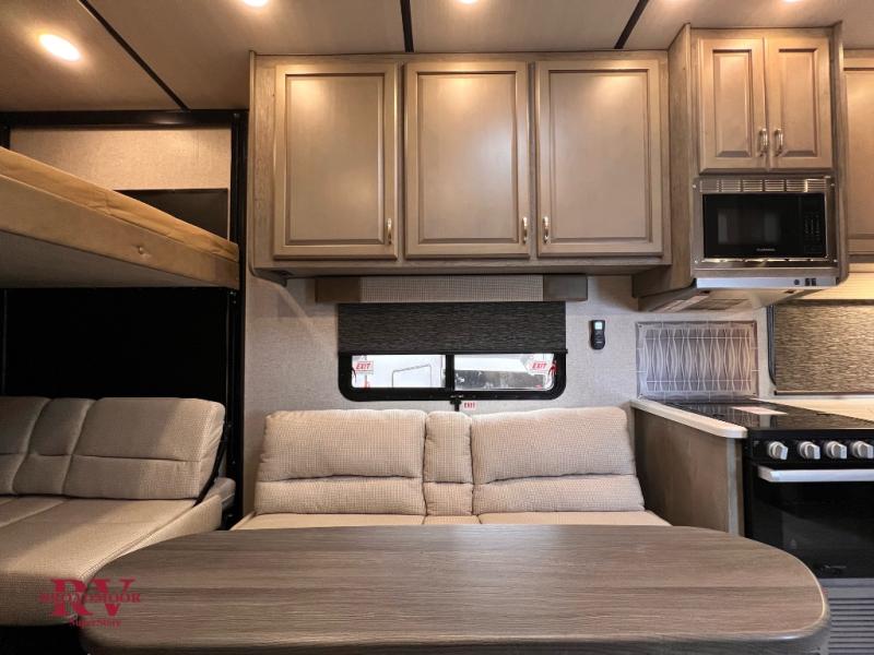 Don't wait one more minute to snatch up this Desert Fox toy hauler! This unit has a great layout with a walk-around queen-size bed up front in a semi-private bedroom. You can section off this bedroom space by drawing the privacy curtain. If you're someone who loves riding your power toys all throughout the woods, you're probably also someone who enjoys living in the fresh air which is why the 14' awning will be used quite often. The wide body allows you to bring in toys through the 90" x 90" fold-down cargo door, and you can add an optional ramp door patio kit if you'd like.