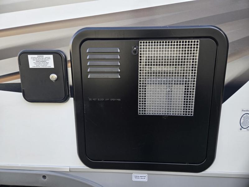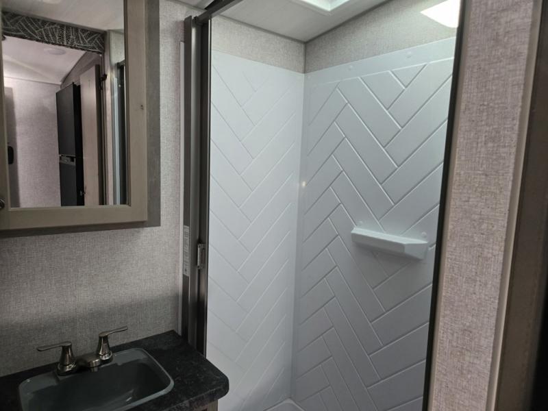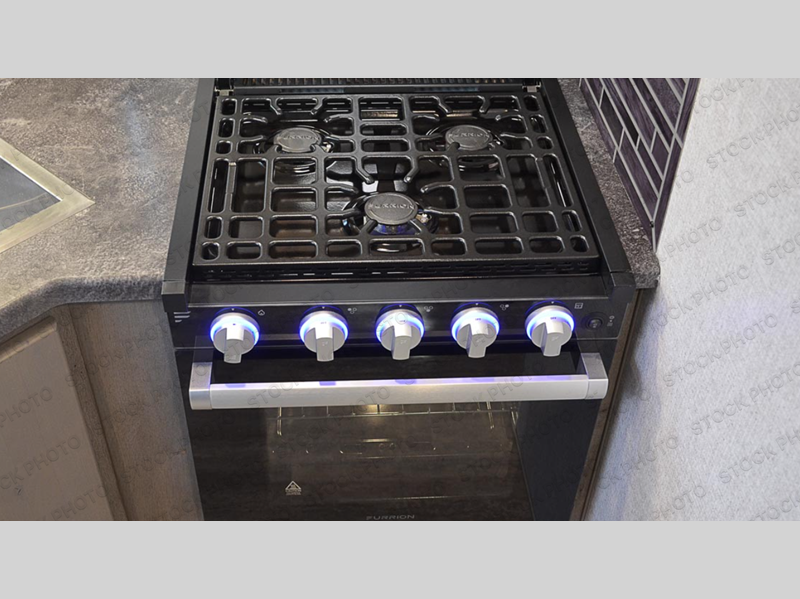 A family of three or four will love camping in this trailer with the versatile front roll over sofa and 60" x 74.5" Murphy bed, and the slide out with a U-shaped dinette and wardrobe. The dinette converts to 45" x 85" sleeping area for your child or smaller children at night making it versatile for your needs. You will find three wardrobes for your clothing, a pantry for your dry goods, and exterior storage for your outdoor gear. The full bathroom will let you freshen up before bedtime, and the kitchen offers a three burner range plus a 10 cu. ft. 12V refrigerator to keep cold items fresh!