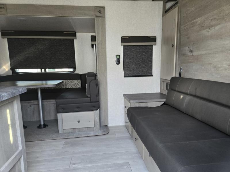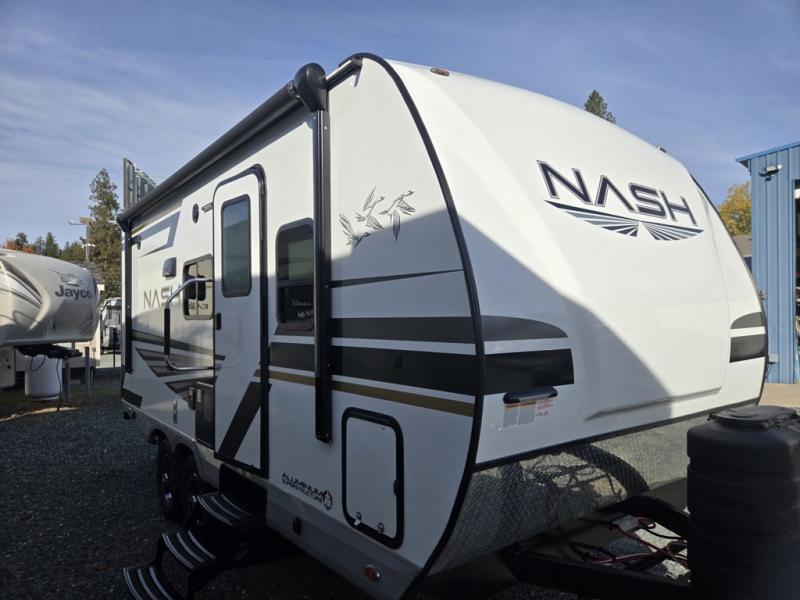 With any Nash travel trailer by Northwood, you can be sure you're getting a durable RV made to last thanks to the fully welded, thick-wall aluminum frame construction and Northwood built Ironhorse chassis. There are also thermal pane windows, Corona treated fiberglass, and all-conditions/four seasons insulation so you can camp year around! A pass through storage with an LED light will let you easily store camp gear and the SolX 4 - 400 Watt Solar Package will provide some off-grid capabilities. Head inside to enjoy the cathedral arched ceiling, along with slow rise night shades, a Northwood TruRest mattress, an AM/FM stereo with Bluetooth, and many more at-home comforts.