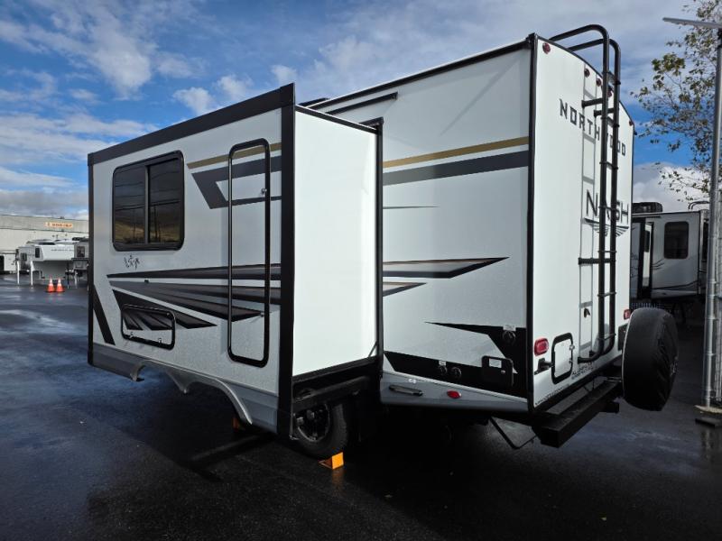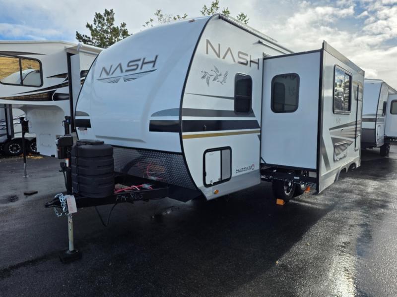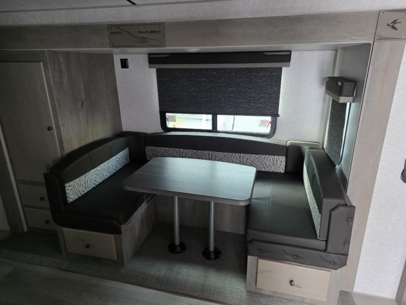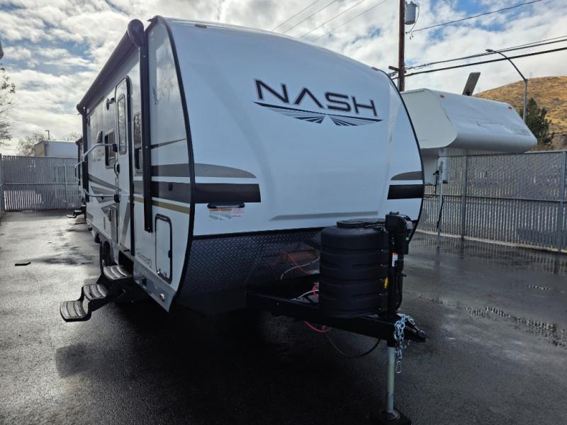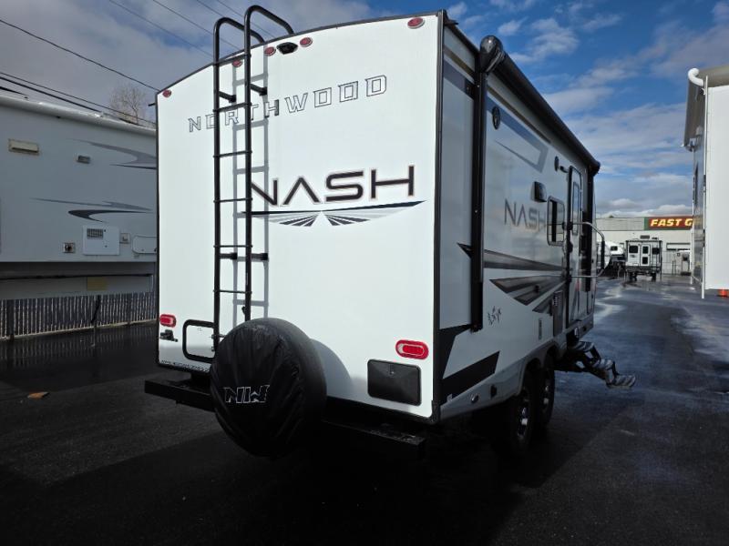 With any Nash travel trailer by Northwood, you can be sure you're getting a durable RV made to last thanks to the fully welded, thick-wall aluminum frame construction and Northwood built Ironhorse chassis. There are also thermal pane windows, Corona treated fiberglass, and all-conditions/four seasons insulation so you can camp in any weather! A pass through storage with an LED light will let you easily store camp gear and the SolX 4 - 400 Watt Solar Package will provide some off-grid capabilities. Head inside to enjoy the cathedral arched ceiling, along with slow rise night shades, a Northwood TruRest mattress, an AM/FM stereo with Bluetooth, and many more at-home comforts.