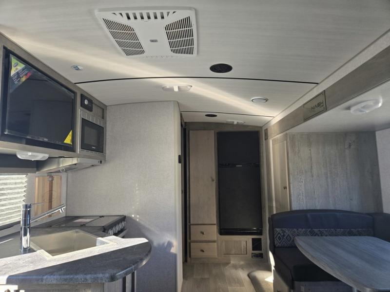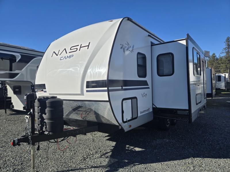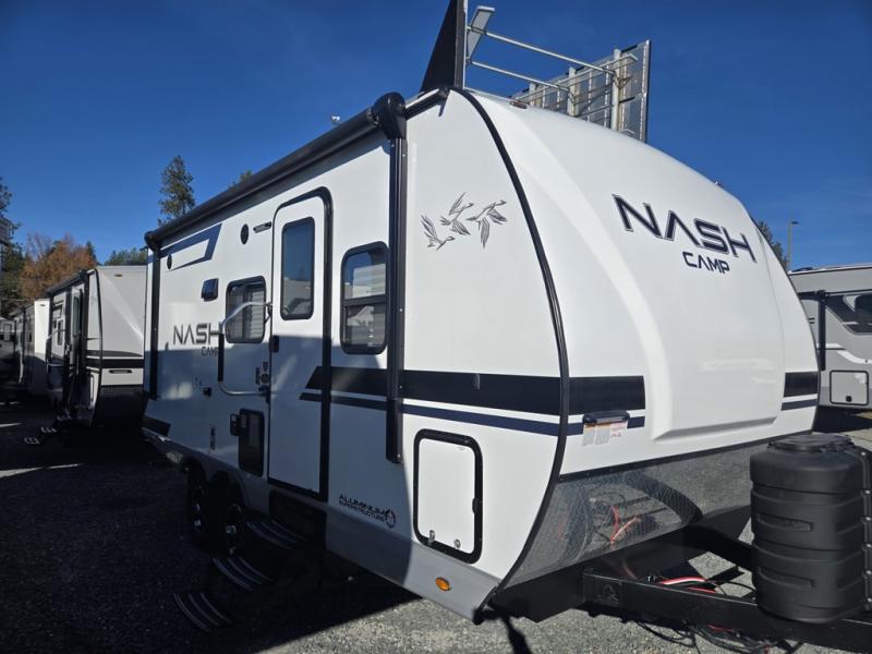 With any Nash travel trailer by Northwood, you can be sure you're getting a durable RV made to last thanks to the fully welded, thick-wall aluminum frame construction and Northwood built Ironhorse chassis. There are also thermal pane windows, Corona treated fiberglass, and all-conditions/four seasons insulation so you can camp in any weather! A pass through storage with an LED light will let you easily store camp gear and the SolX 4 - 400 Watt Solar Package will provide some off-grid capabilities. Head inside to enjoy the cathedral arched ceiling, along with slow rise night shades, a Northwood TruRest mattress, an AM/FM stereo with Bluetooth, and many more at-home comforts.