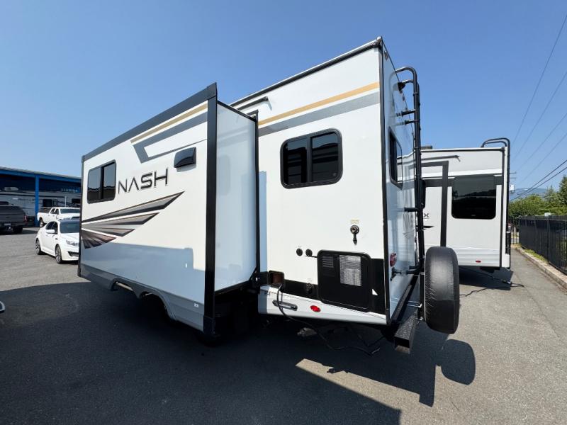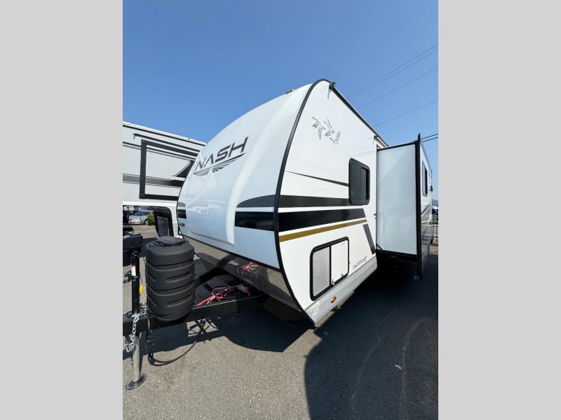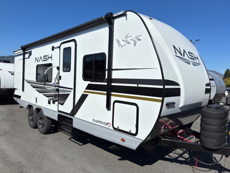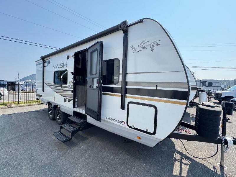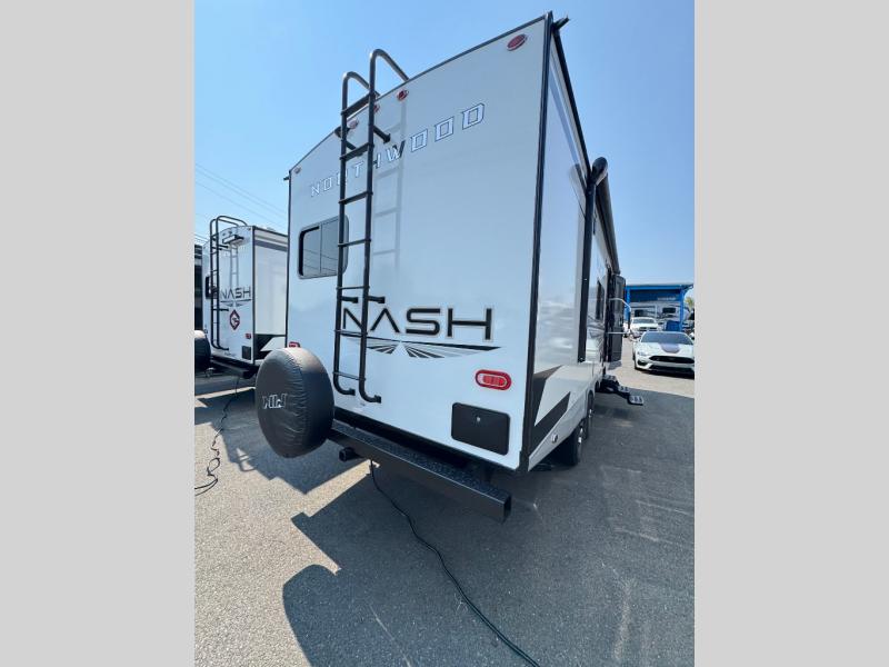 With any Nash travel trailer by Northwood, you can be sure you're getting a durable RV made to last thanks to the fully welded, thick-wall aluminum frame construction and Northwood built Ironhorse chassis. There are also thermal pane windows, Corona treated fiberglass, and all-conditions/four seasons insulation so you can camp year around! A pass through storage with an LED light will let you easily store camp gear and the SolX 4 - 400 Watt Solar Package will provide some off-grid capabilities. Head inside to enjoy the cathedral arched ceiling, along with slow rise night shades, a Northwood TruRest mattress, an AM/FM stereo with Bluetooth, and many more at-home comforts.