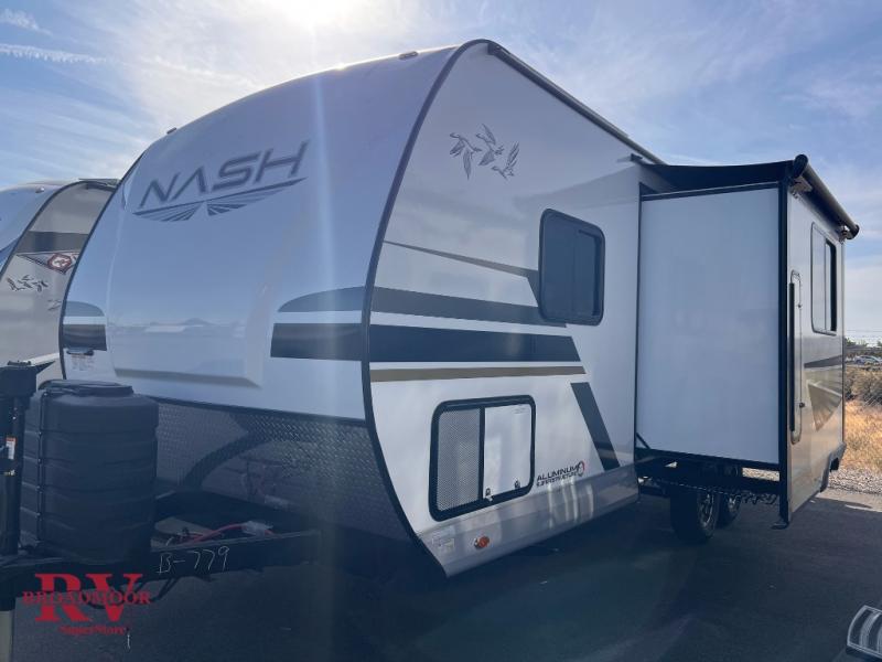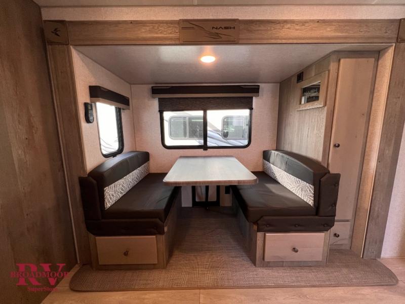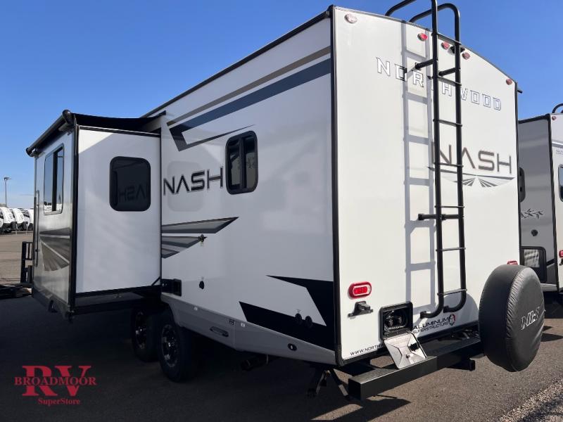 With any Nash travel trailer by Northwood, you can be sure you're getting a durable RV made to last thanks to the fully welded, thick-wall aluminum frame construction and Northwood built Ironhorse chassis. There are also thermal pane windows, Corona treated fiberglass, and all-conditions/four seasons insulation so you can camp year around! A pass through storage with an LED light will let you easily store camp gear and the SolX 4 - 400 Watt Solar Package will provide some off-grid capabilities. Head inside to enjoy the cathedral arched ceiling, along with slow rise night shades, a Northwood TruRest mattress, an AM/FM stereo with Bluetooth, and many more at-home comforts.
