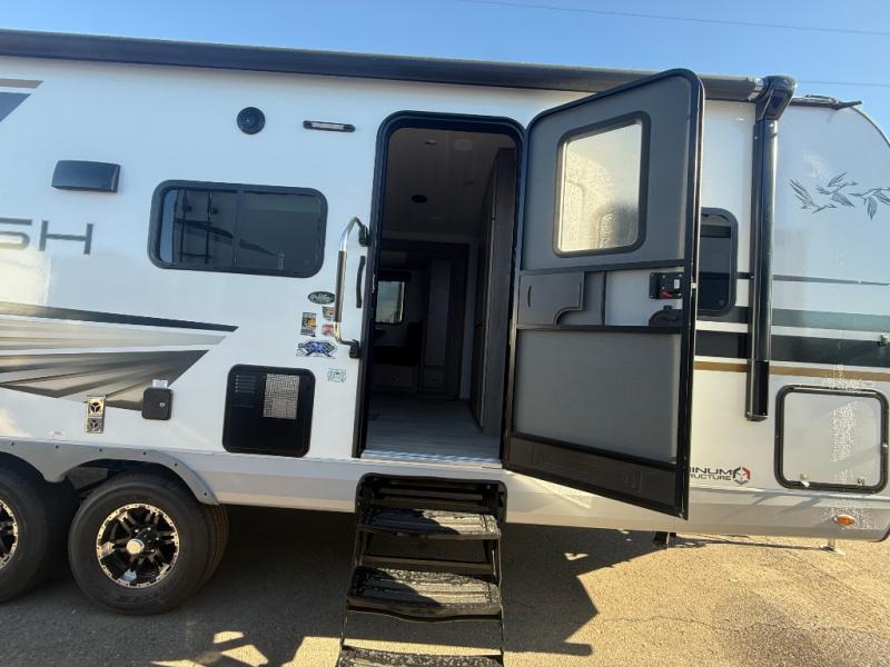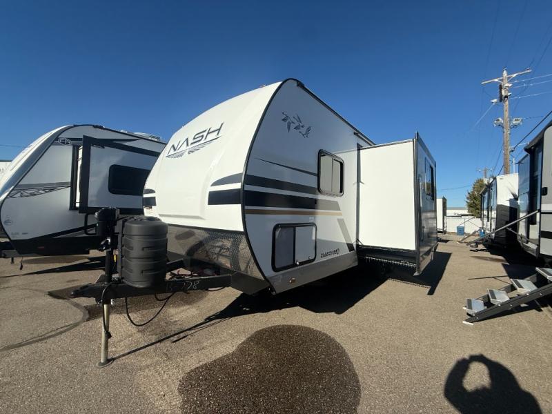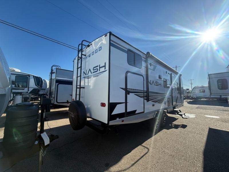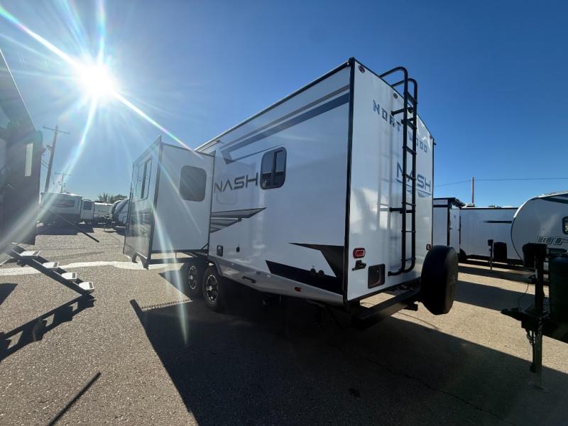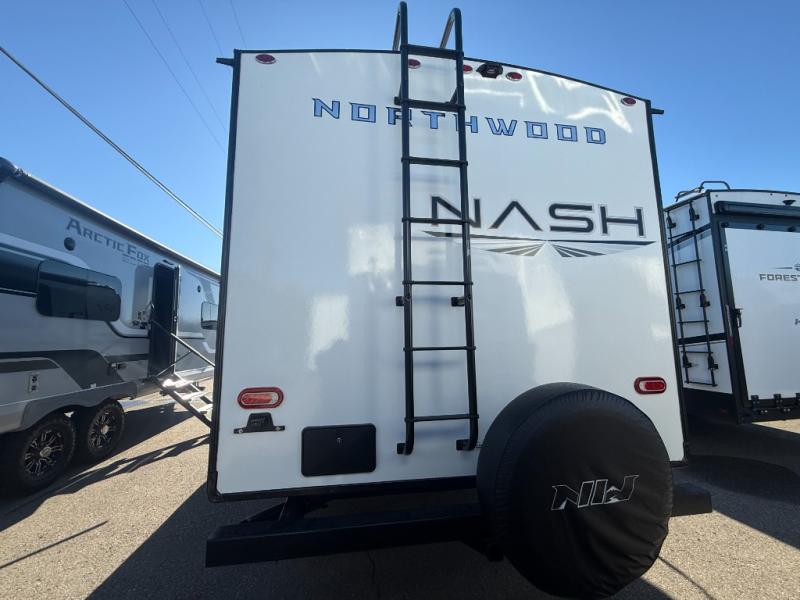 With any Nash travel trailer by Northwood, you can be sure you're getting a durable RV made to last thanks to the fully welded, thick-wall aluminum frame construction and Northwood built Ironhorse chassis. There are also thermal pane windows, Corona treated fiberglass, and all-conditions/four seasons insulation so you can camp year around! A pass through storage with an LED light will let you easily store camp gear and the SolX 4 - 400 Watt Solar Package will provide some off-grid capabilities. Head inside to enjoy the cathedral arched ceiling, along with slow rise night shades, a Northwood TruRest mattress, an AM/FM stereo with Bluetooth, and many more at-home comforts.