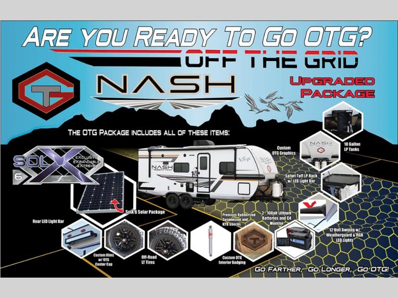 With any Nash travel trailer by Northwood, you can be sure you're getting a durable RV made to last thanks to the fully welded, thick-wall aluminum frame construction and Northwood built Ironhorse chassis. There are also thermal pane windows, Corona treated fiberglass, and all-conditions/four seasons insulation so you can camp year around! A pass through storage with an LED light will let you easily store camp gear and the SolX 4 - 400 Watt Solar Package will provide some off-grid capabilities. Head inside to enjoy the cathedral arched ceiling, along with slow rise night shades, a Northwood TruRest mattress, an AM/FM stereo with Bluetooth, and many more at-home comforts.