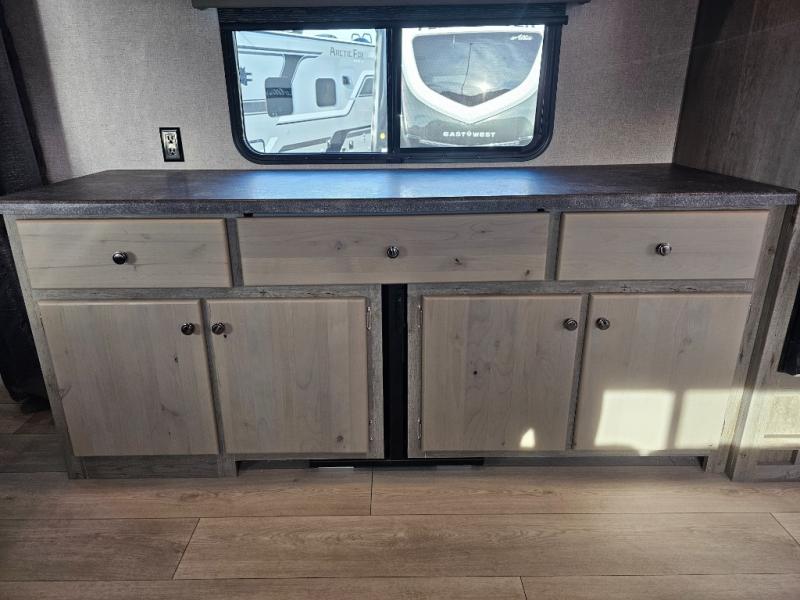 With any Nash travel trailer by Northwood, you can be sure you're getting a durable RV made to last thanks to the fully welded, thick-wall aluminum frame construction and Northwood built Ironhorse chassis. There are also thermal pane windows, Corona treated fiberglass, and all-conditions/four seasons insulation so you can camp in any weather! A pass-through storage with an LED light will let you easily store camp gear and the SolX 4 - 400-Watt Solar Package will provide some off-grid capabilities. Head inside to enjoy the cathedral arched ceiling, along with slow rise night shades, a Northwood TruRest mattress, an AM/FM stereo with Bluetooth, and many more at-home comforts. The optional Off the Grid Package can be added to any Nash model and includes custom OTG graphics, a SolX 6 Solar Package, a rear LED light bar, off-road tires, and more upgraded features!