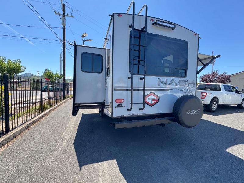 With any Nash travel trailer by Northwood, you can be sure you're getting a durable RV made to last thanks to the fully welded, thick-wall aluminum frame construction and Northwood built Ironhorse chassis. There are also thermal pane windows, Corona treated fiberglass, and all-conditions/four seasons insulation so you can camp year around! A pass through storage with an LED light will let you easily store camp gear and the SolX 4 - 400 Watt Solar Package will provide some off-grid capabilities. Head inside to enjoy the cathedral arched ceiling, along with slow rise night shades, a Northwood TruRest mattress, an AM/FM stereo with Bluetooth, and many more at-home comforts.