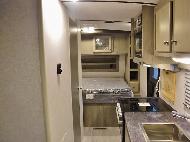 This is the perfect couples trailer for adventure and comfort during any season. From the front queen-size bed for a good night's sleep to the rear booth dinette that converts to sleeping space for one to two at night, you will be able to sleep above ground at any campsite or RV park. The next morning, whip up breakfast on the three burner range, and get cleaned up in the full bathroom in the shower. There is also plenty of counter space, a 10 cu. ft. 12V refrigerator for food, plus a wardrobe by the refrigerator that can be used for clothes or dry goods!