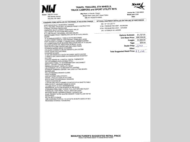 This Northwood Nash Camp travel trailer 25KT includes these options: