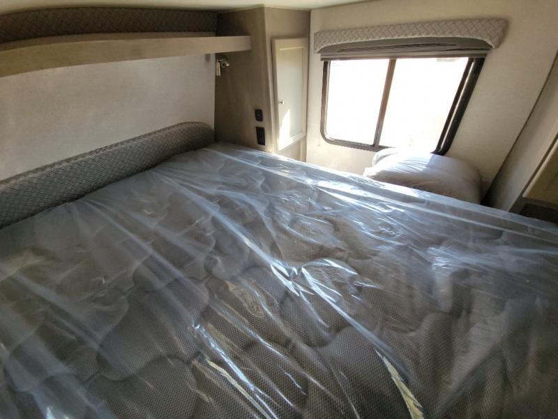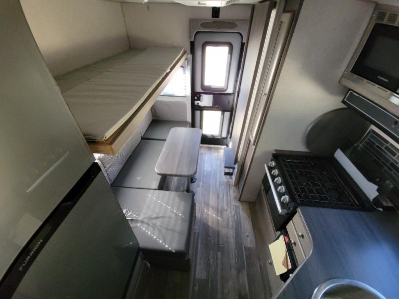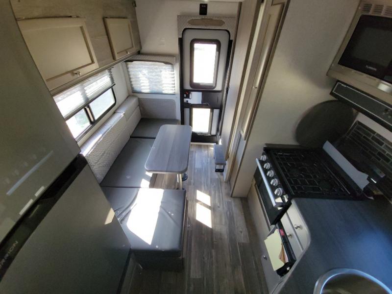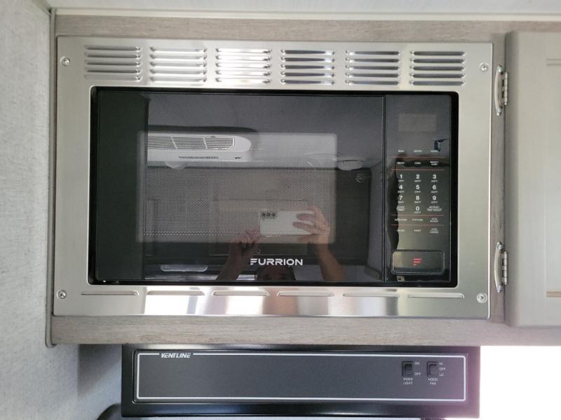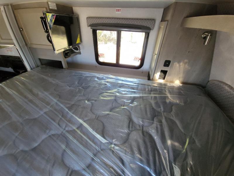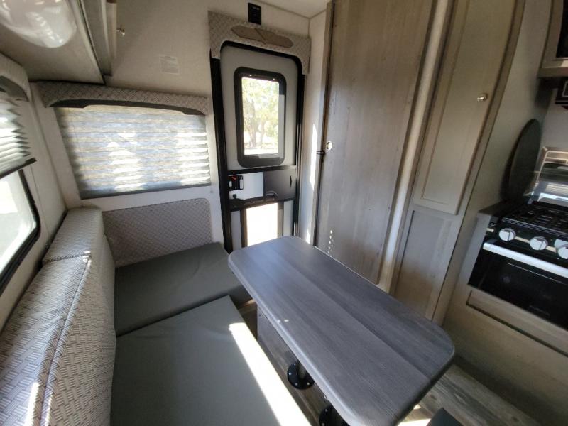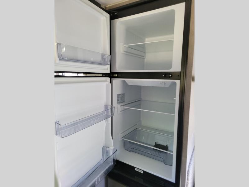 Head across the states in this comfortable truck camper for four. Once you find a campground to park for the night, start lunch on the three burner cooktop, or use the residential microwave with an air fryer for a quick meal. The U-shaped dinette will be the perfect place to dine at, or you can choose the optional roll-over sofa here. The dinette converts to a 38" x 77" sleeping area, plus there is an overhead bunk. You will enjoy the front 58" x 80" queen bed that includes three wardrobes and a nightstand for your things, and don't forget to add the optional 24" 12V LED TV for movies in bed.