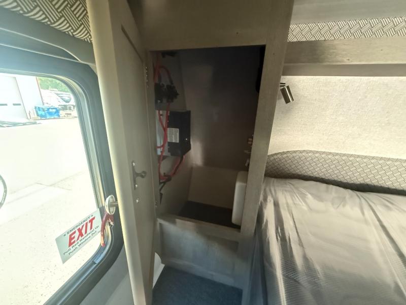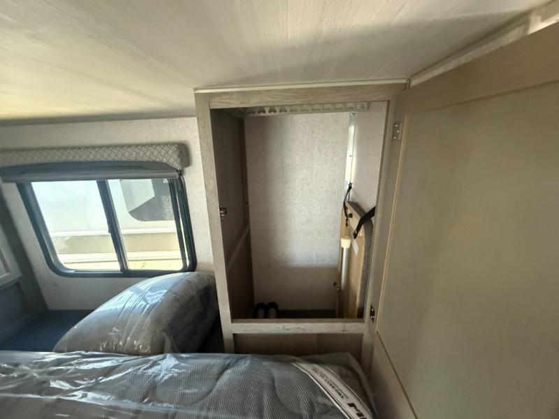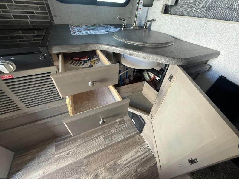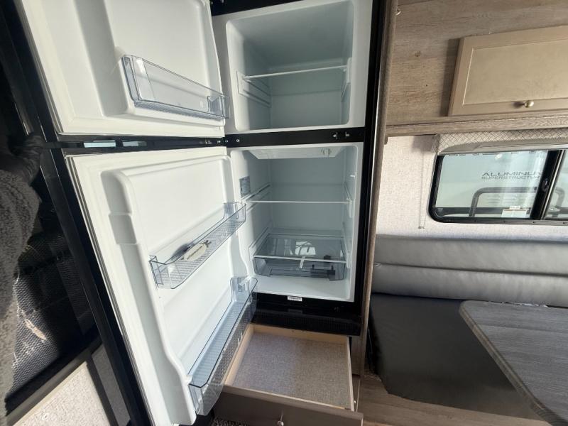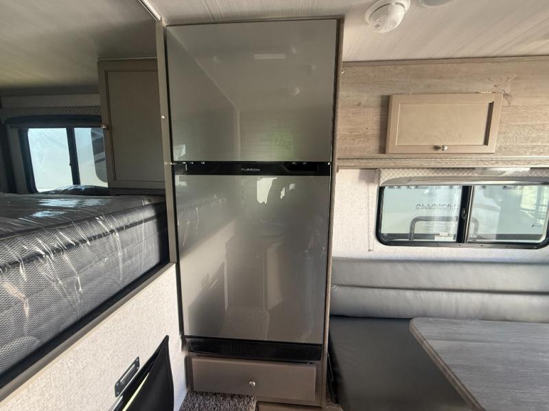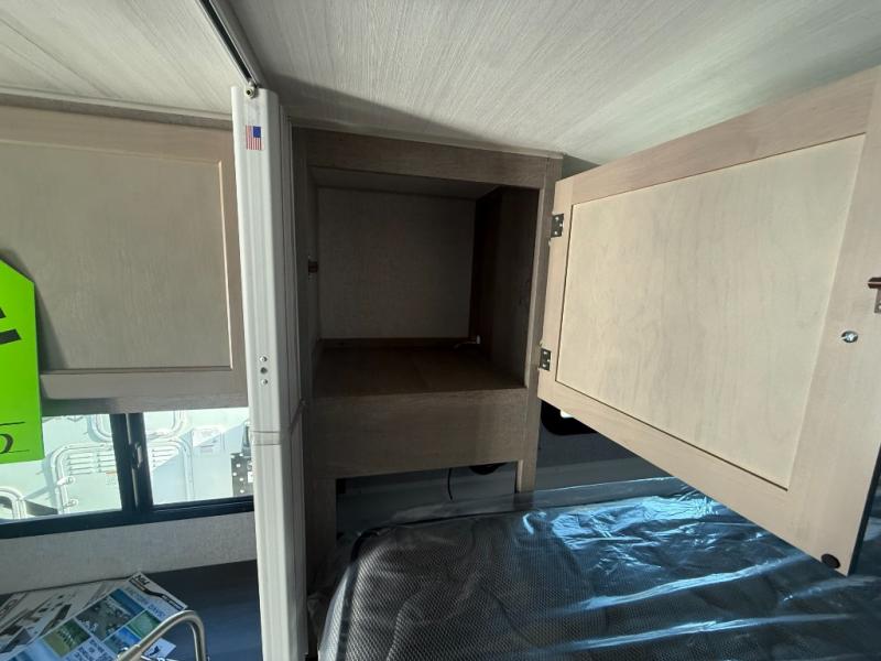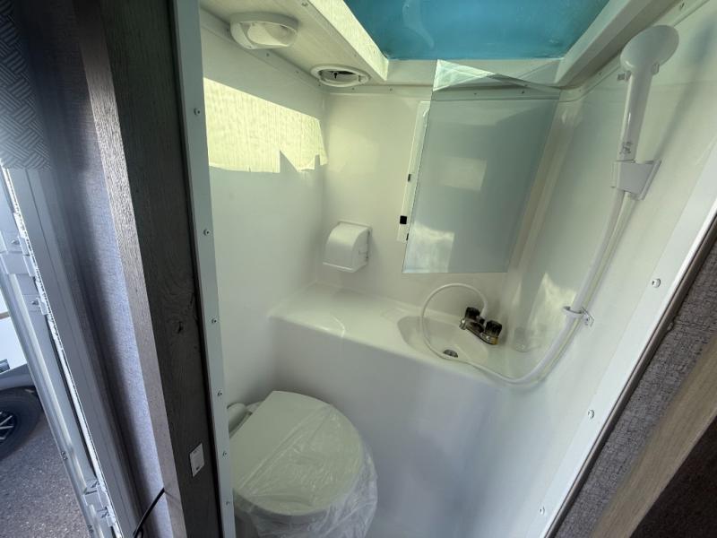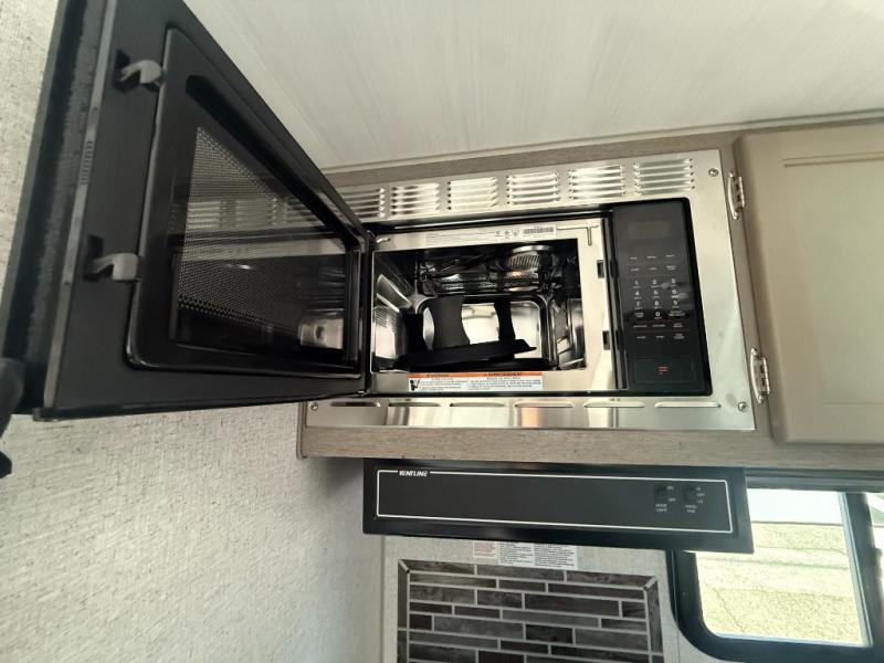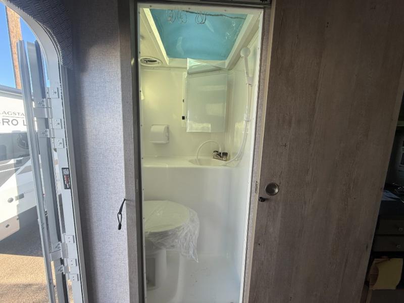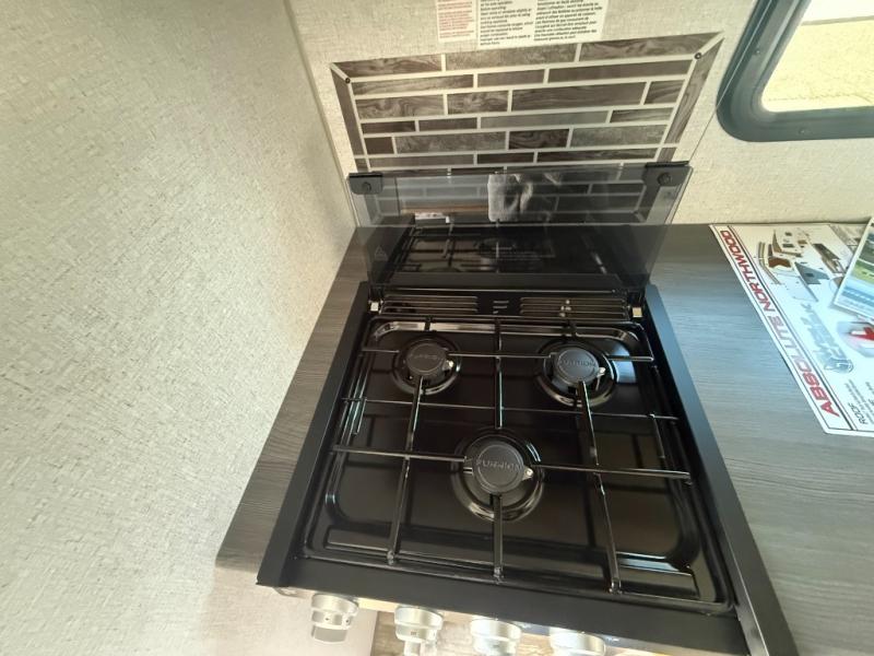 Head across the states in this comfortable truck camper for four. Once you find a campground to park for the night, start lunch on the three burner cooktop, or use the residential microwave with an air fryer for a quick meal. The U-shaped dinette will be the perfect place to dine at, or you can choose the optional roll-over sofa here. The dinette converts to a 38" x 77" sleeping area, plus there is an overhead bunk. You will enjoy the front 58" x 80" queen bed that includes three wardrobes and a nightstand for your things, and don't forget to add the optional 24" 12V LED TV for movies in bed.