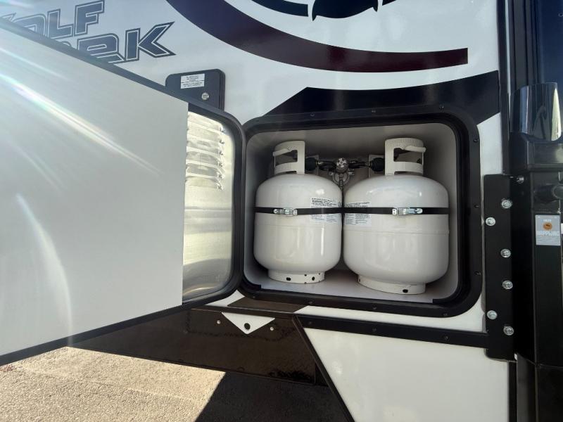 With any Wolf Creek truck camper by Northwood you can camp year around thanks to the high density block foam insulation, thermal pane windows, and the multi-layered substrate walls. The durable fully welded, thick-wall aluminum frame construction will add durability, and the Corona treated fiberglass will help combat leaks so you can enjoy your camper for years to come. Each model includes fabric night shade window treatments, custom one-piece formed countertops and dinette table, hardwood cabinet doors, and many more comforts. You will love the high value features included within the Wolf Pack, such as a Fox Landing ready rear bumper, a premium vent, electric jacks, and outside speakers.