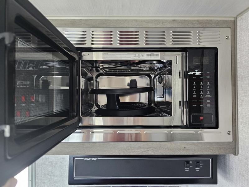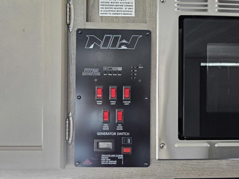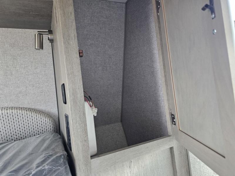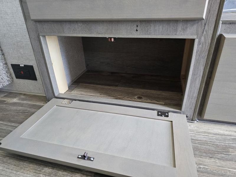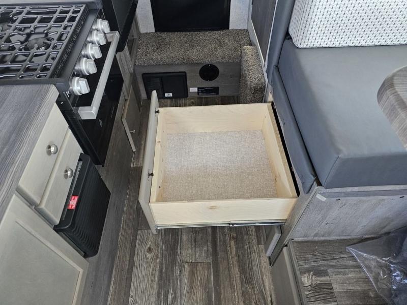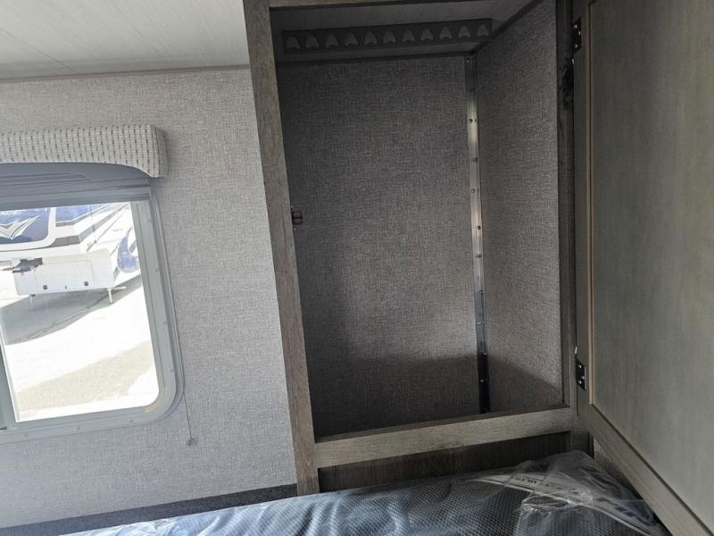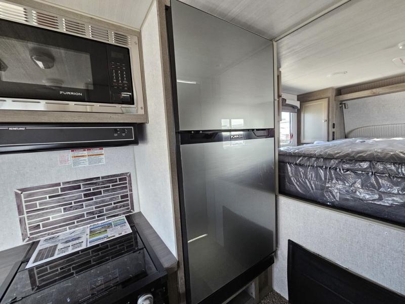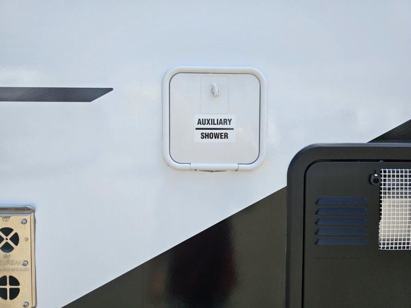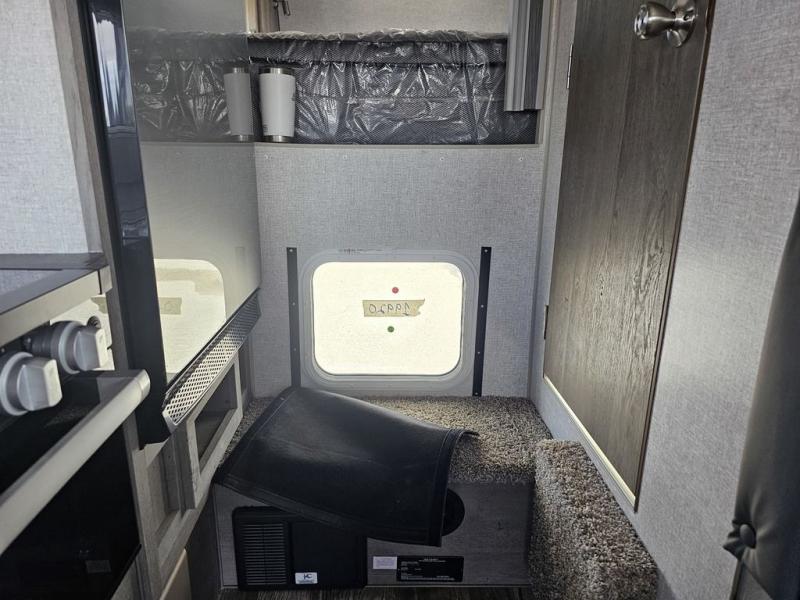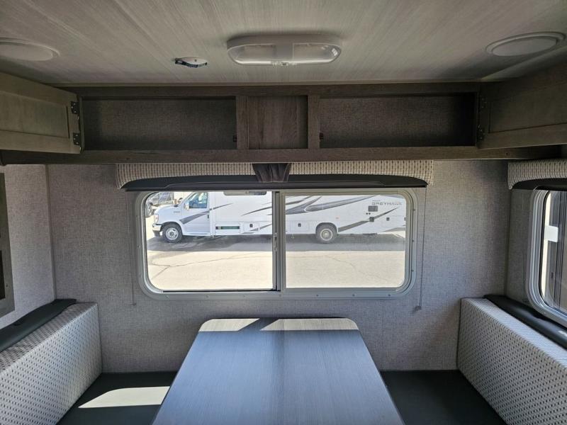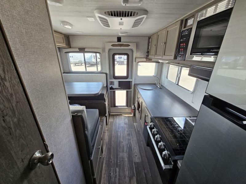 Make your weekend excursions easier than ever in this cozy truck camper for three to four. Since there is a 58" x 80" queen bed up front, you won't have to sleep on the floor, and your guests can sleep on the booth dinette that converts to a 40" x 72" sleeping area. Get cleaned up each day in the convenient wet bath that includes a medicine cabinet and an exhaust fan to keep everything fresh. There is a three burner cooktop and residential-style microwave with an air fryer to prepare meals each day, plus an 8 cu. ft. 12V refrigerator for perishables. This model also includes three wardrobes around the bed for more storage place plus a TV location if you want to add the optional 24" 12V LED TV!