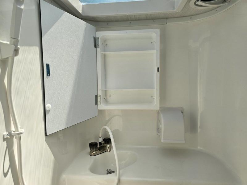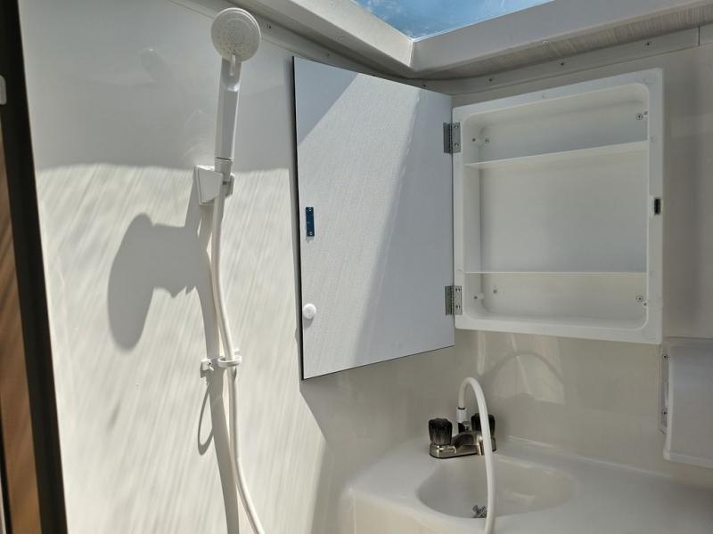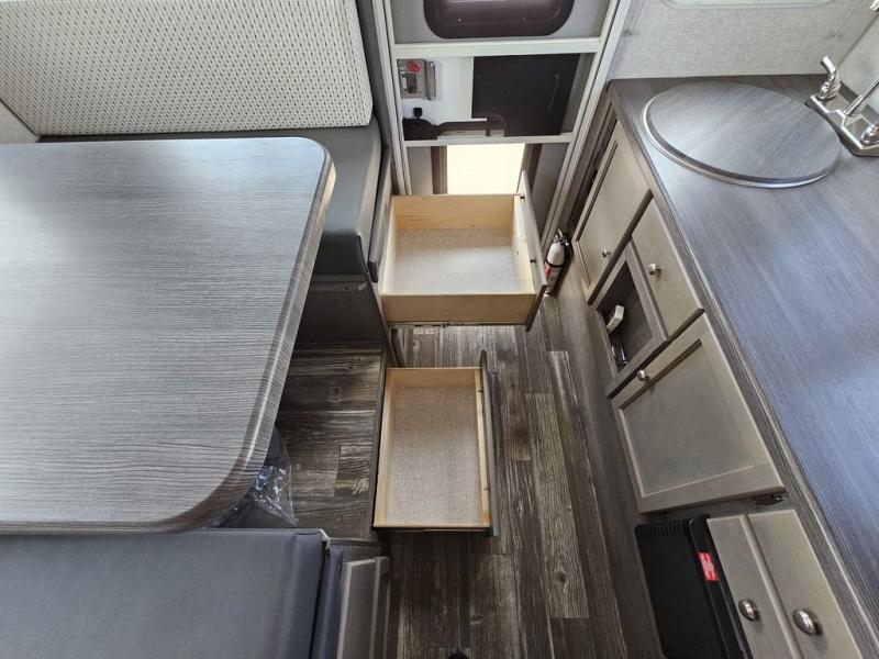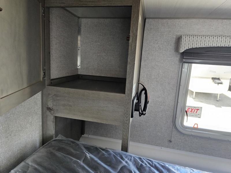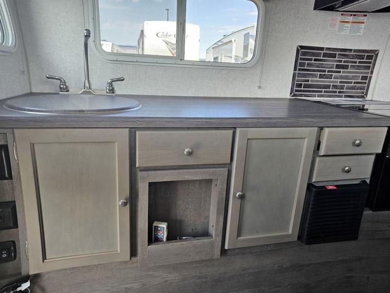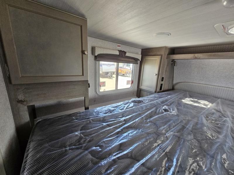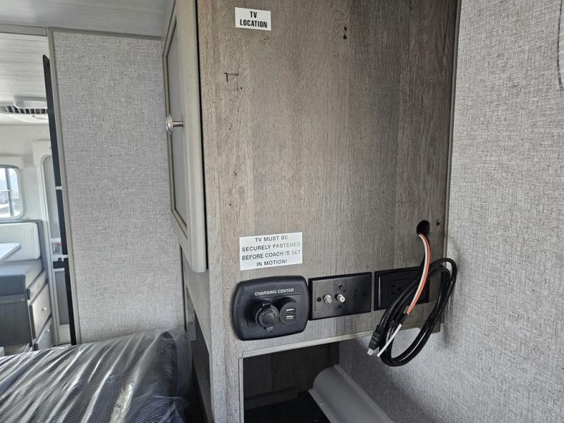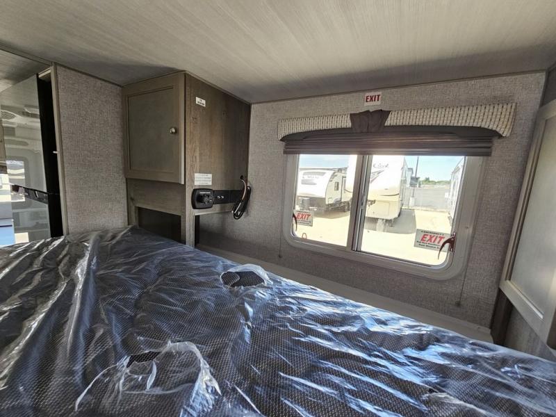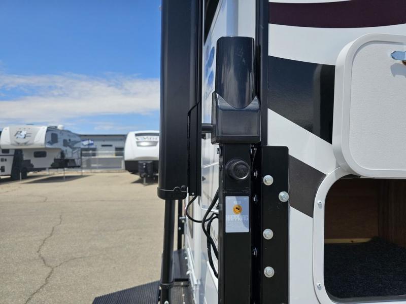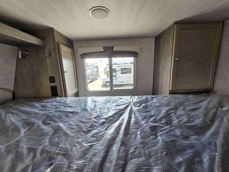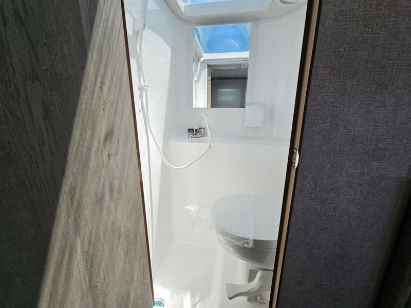 Make your weekend excursions easier than ever in this cozy truck camper for three to four. Since there is a 58" x 80" queen bed up front, you won't have to sleep on the floor, and your guests can sleep on the booth dinette that converts to a 40" x 72" sleeping area. Get cleaned up each day in the convenient wet bath that includes a medicine cabinet and an exhaust fan to keep everything fresh. There is a three burner cooktop and residential-style microwave with an air fryer to prepare meals each day, plus an 8 cu. ft. 12V refrigerator for perishables. This model also includes three wardrobes around the bed for more storage place plus a TV location if you want to add the optional 24" 12V LED TV!