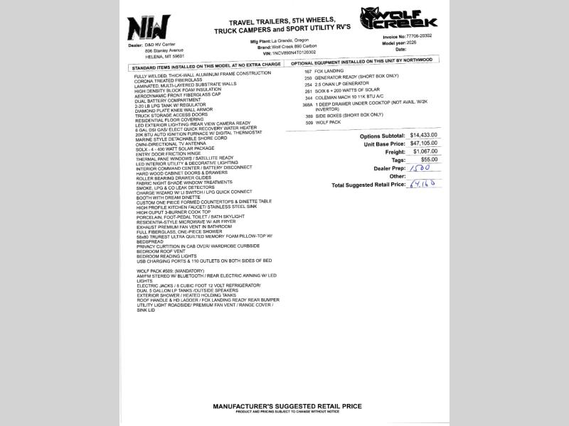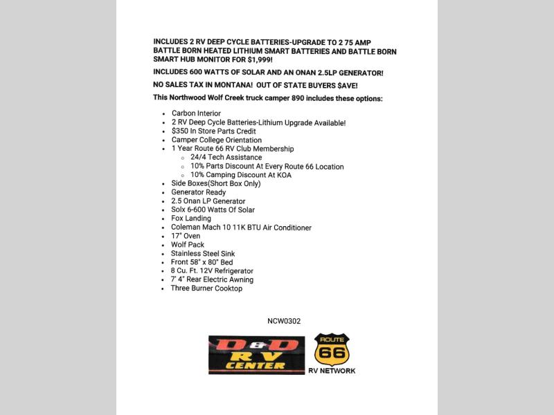 This Northwood Wolf Creek truck camper 890 includes these options: