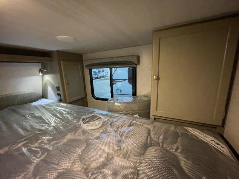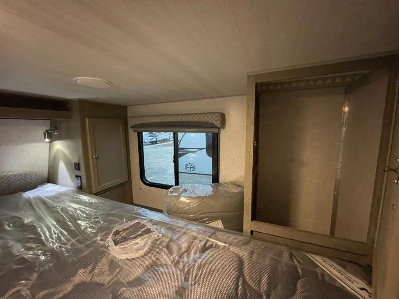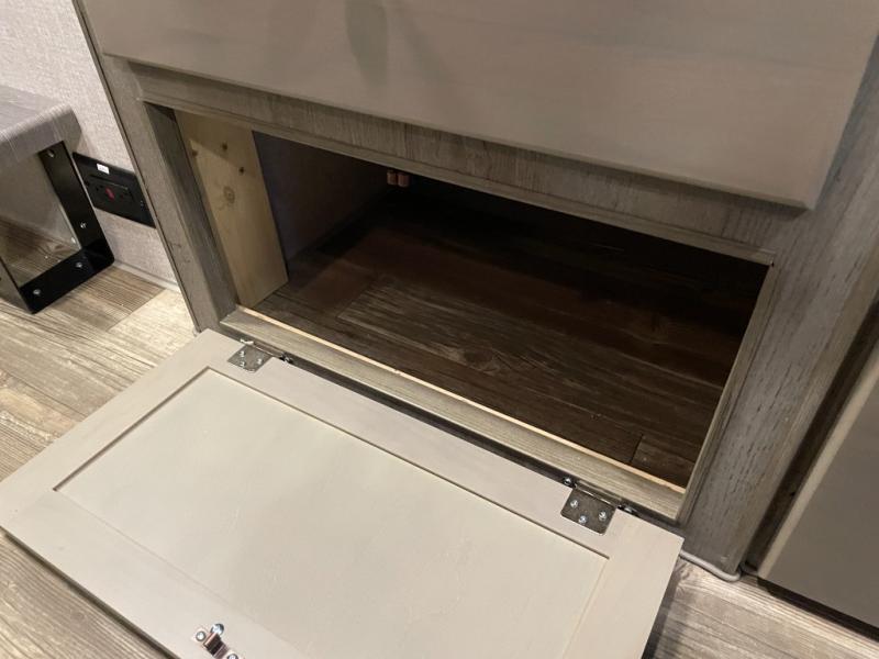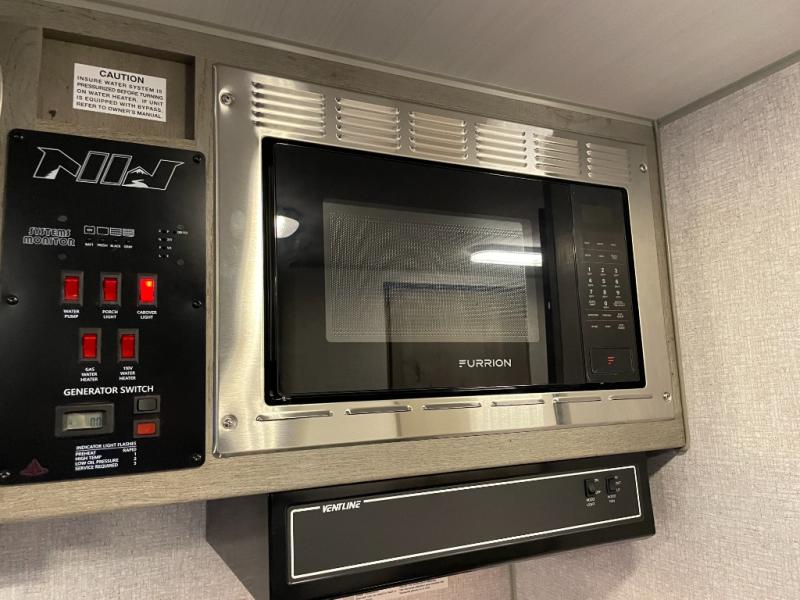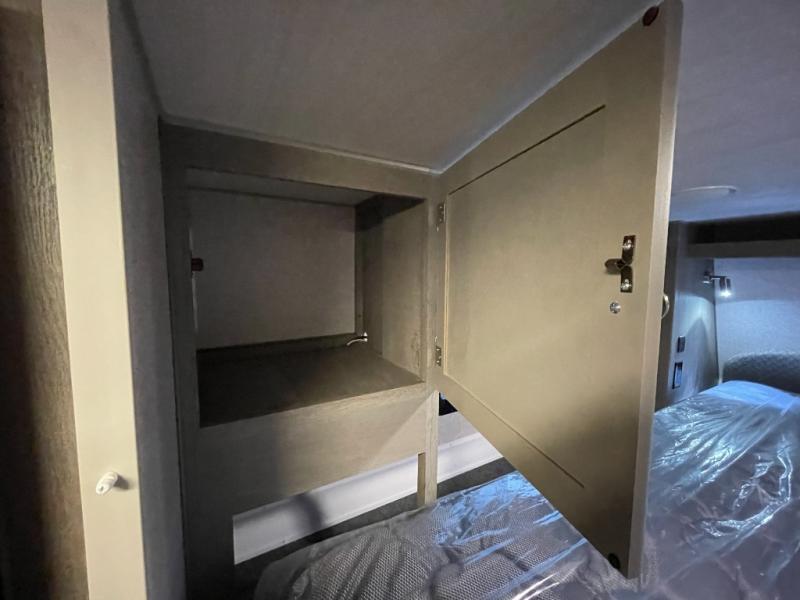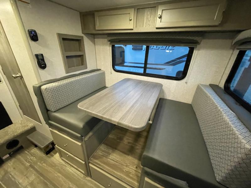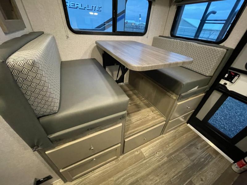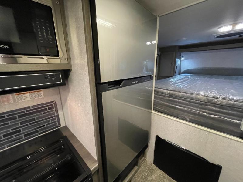 Make your weekend excursions easier than ever in this cozy truck camper for three to four. Since there is a 58" x 80" queen bed up front, you won't have to sleep on the floor, and your guests can sleep on the booth dinette that converts to a 40" x 72" sleeping area. Get cleaned up each day in the convenient wet bath that includes a medicine cabinet and an exhaust fan to keep everything fresh. There is a three burner cooktop and residential-style microwave with an air fryer to prepare meals each day, plus an 8 cu. ft. 12V refrigerator for perishables. This model also includes three wardrobes around the bed for more storage place plus a TV location if you want to add the optional 24" 12V LED TV!