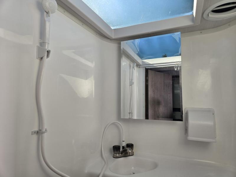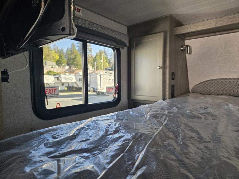 Make your weekend excursions easier than ever in this cozy truck camper for three to four. Since there is a 58" x 80" queen bed up front, you won't have to sleep on the floor, and your guests can sleep on the booth dinette that converts to a 40" x 72" sleeping area. Get cleaned up each day in the convenient wet bath that includes a medicine cabinet and an exhaust fan to keep everything fresh. There is a three burner cooktop and residential-style microwave with an air fryer to prepare meals each day, plus an 8 cu. ft. 12V refrigerator for perishables. This model also includes three wardrobes around the bed for more storage place plus a TV location if you want to add the optional 24" 12V LED TV!