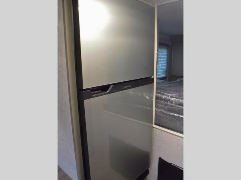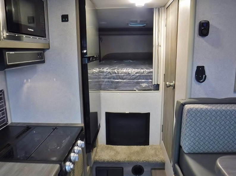 Make your weekend excursions easier than ever in this cozy truck camper for three to four. Since there is a 58" x 80" queen bed up front, you won't have to sleep on the floor, and your guests can sleep on the booth dinette that converts to a 40" x 72" sleeping area. Get cleaned up each day in the convenient wet bath that includes a medicine cabinet and an exhaust fan to keep everything fresh. There is a three burner cooktop and residential-style microwave with an air fryer to prepare meals each day, plus an 8 cu. ft. 12V refrigerator for perishables. This model also includes three wardrobes around the bed for more storage place plus a TV location if you want to add the optional 24" 12V LED TV!