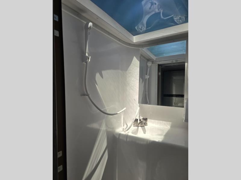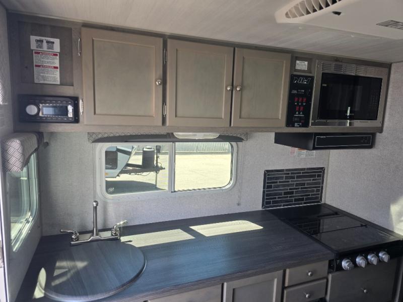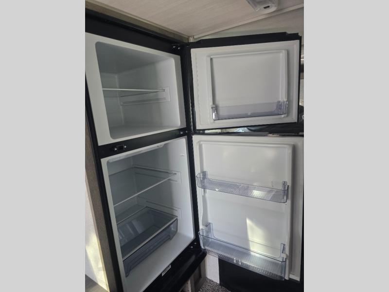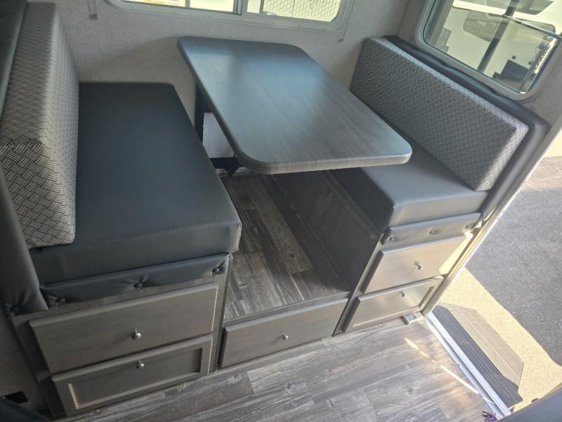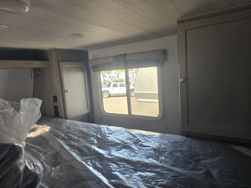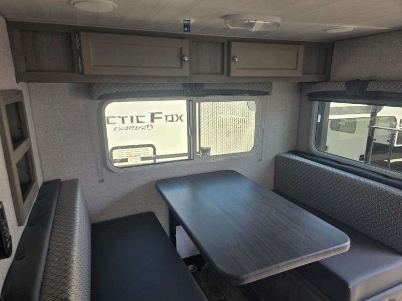 Make your weekend excursions easier than ever in this cozy truck camper for three to four. Since there is a 58" x 80" queen bed up front, you won't have to sleep on the floor, and your guests can sleep on the booth dinette that converts to a 40" x 72" sleeping area. Get cleaned up each day in the convenient wet bath that includes a medicine cabinet and an exhaust fan to keep everything fresh. There is a three burner cooktop and residential-style microwave with an air fryer to prepare meals each day, plus an 8 cu. ft. 12V refrigerator for perishables. This model also includes three wardrobes around the bed for more storage place plus a TV location if you want to add the optional 24" 12V LED TV!