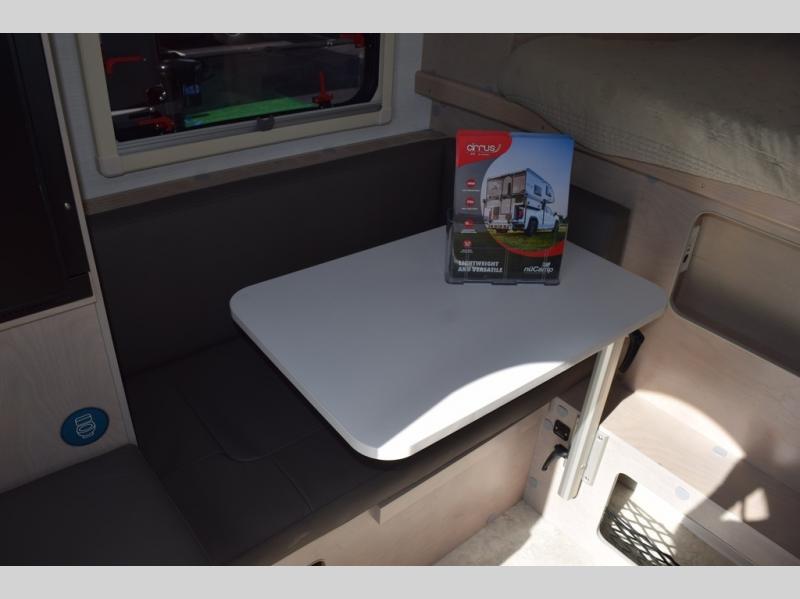 This Cirrus truck camper comes with a Froli sleep system which is a unique and innovative approach to a comfortable night of sleep. While you're sleeping on the bed, you can look through the stargazer window to appreciate the night sky. The dinette can easily be transformed into a second bed, and the sink, two-burner stove, and 4.6 cu. ft. 12V compressor refrigerator give you a place to prepare meals. This model also comes with an external LP hook-up, a Nautilus Water Management System, an exterior shower, and a dual battery compartment.