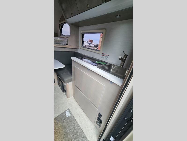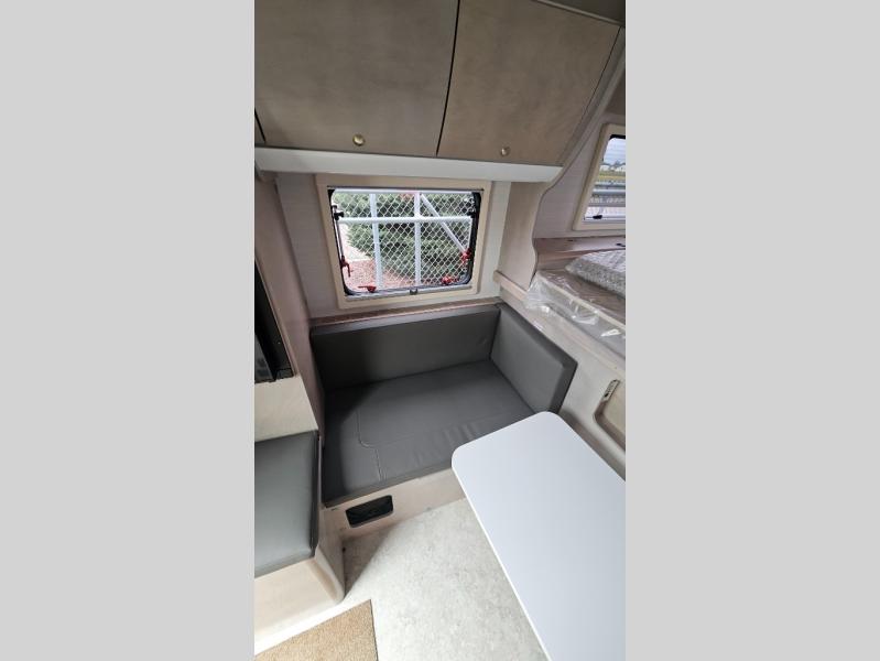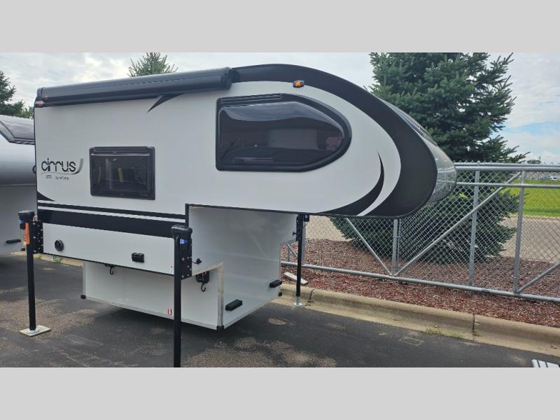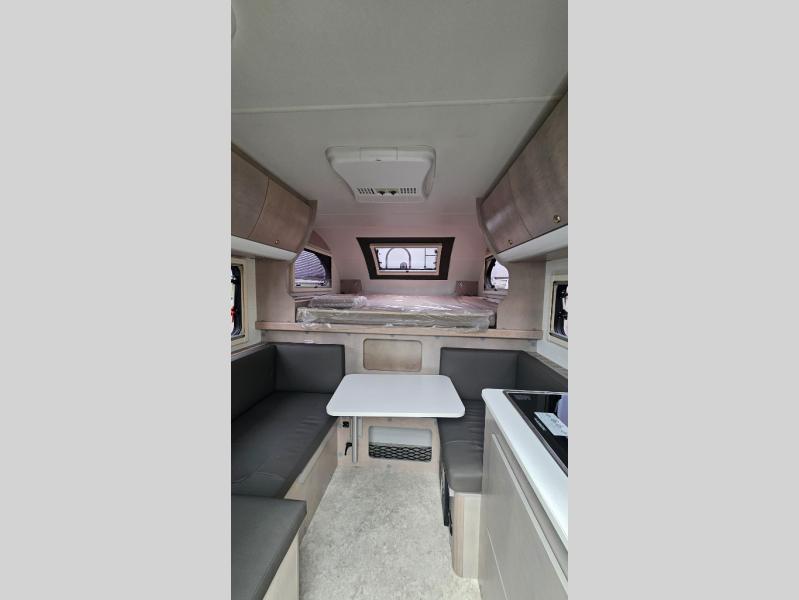 This Cirrus truck camper comes with a Froli sleep system which is a unique and innovative approach to a comfortable night of sleep. While you're sleeping on the bed, you can look through the stargazer window to appreciate the night sky. The dinette can easily be transformed into a second bed, and the sink, two-burner stove, and 4.6 cu. ft. 12V compressor refrigerator give you a place to prepare meals. This model also comes with an external LP hook-up, a Nautilus Water Management System, an exterior shower, and a dual battery compartment.