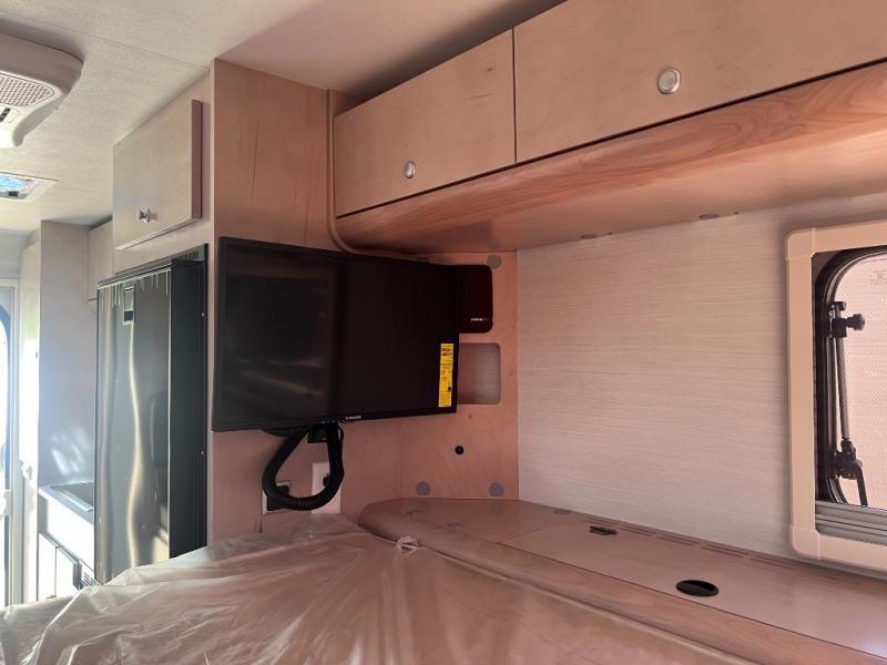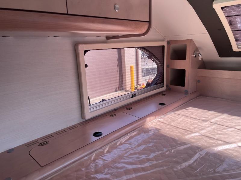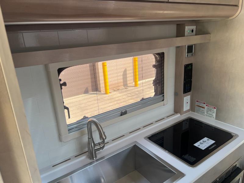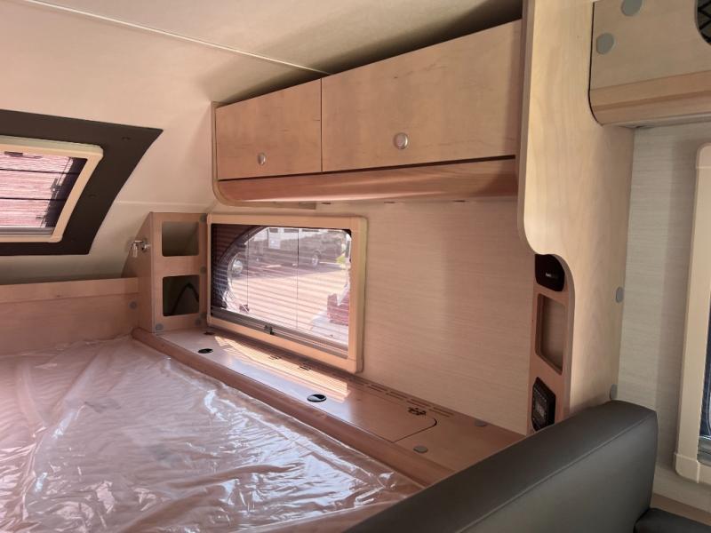 You will find a pass-thru window on this Cirrus truck camper. The exterior has a Maggie roof rack for bringing along extra gear, and there is a motorized 120" side awning to protect you while you're living life outside. The convection microwave/oven is going to make your meal prep easier and faster, and the air conditioning will keep this camper's interior at a desirable temperature even when it's hot outside. This model also comes with a Bluetooth media center with 19" TV and a great sleeping area with the Froli sleep system.