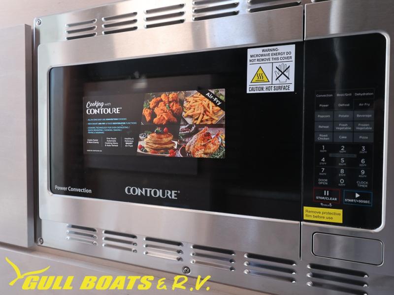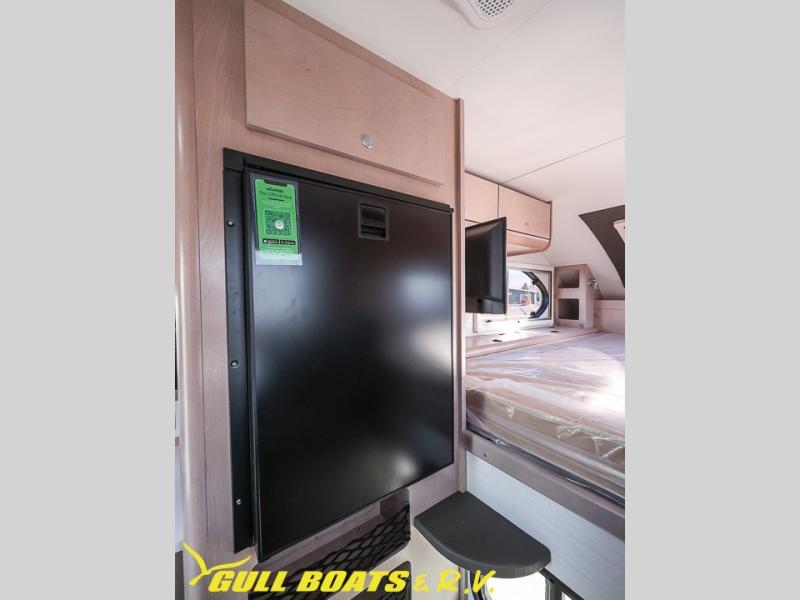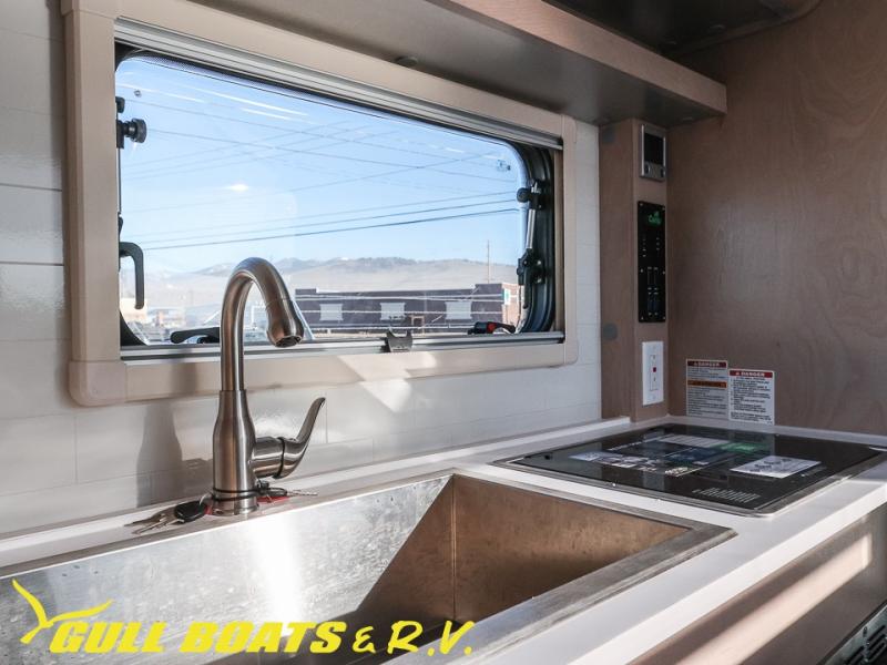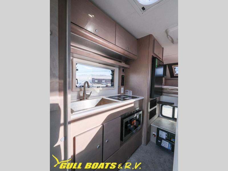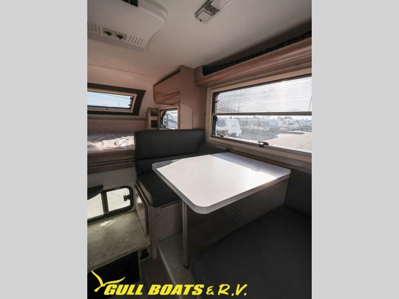 You will find a pass-thru window on this Cirrus truck camper. The exterior has a Maggie roof rack for bringing along extra gear, and there is a motorized 120" side awning to protect you while you're living life outside. The convection microwave/oven is going to make your meal prep easier and faster, and the air conditioning will keep this camper's interior at a desirable temperature even when it's hot outside. This model also comes with a Bluetooth media center with 19" TV and a great sleeping area with the Froli sleep system.