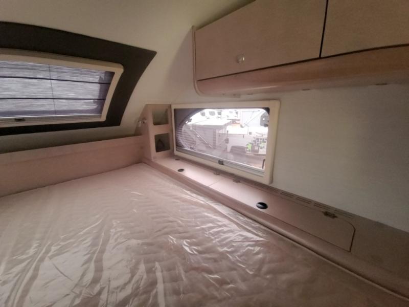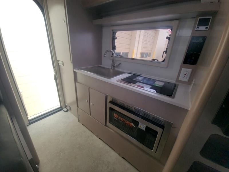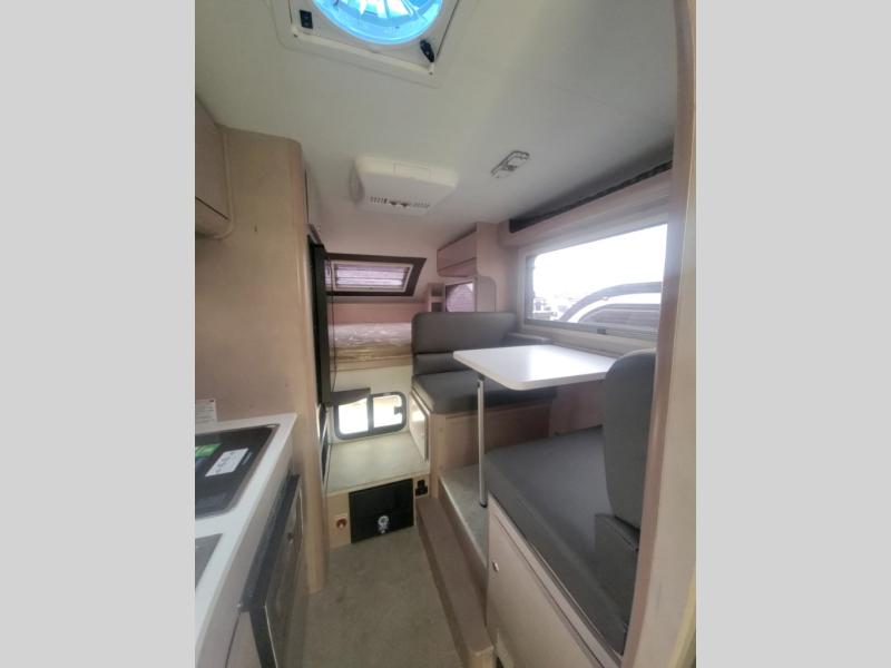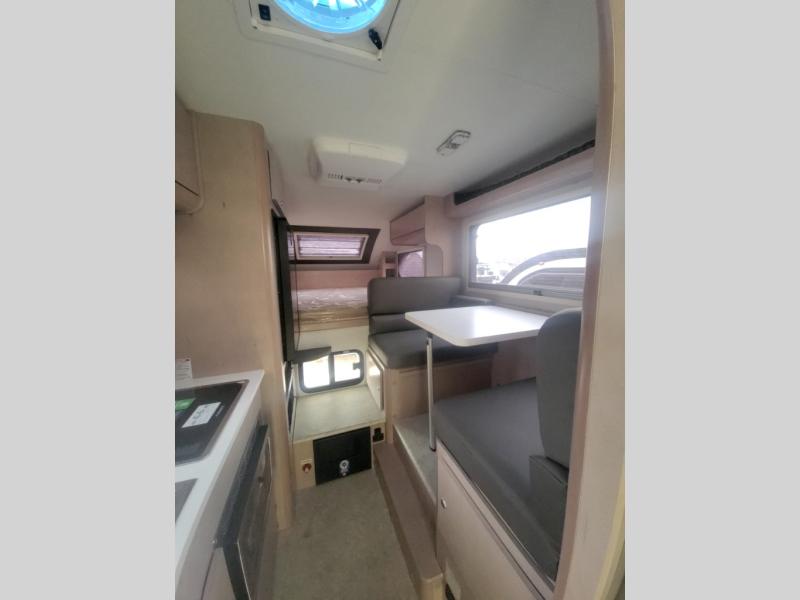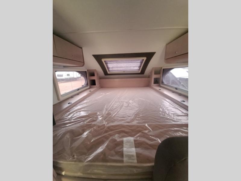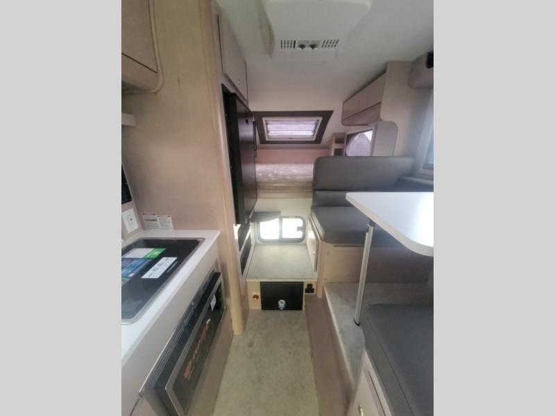 You will find a pass-thru window on this Cirrus truck camper. The exterior has a Maggie roof rack for bringing along extra gear, and there is a motorized 120" side awning to protect you while you're living life outside. The convection microwave/oven is going to make your meal prep easier and faster, and the air conditioning will keep this camper's interior at a desirable temperature even when it's hot outside. This model also comes with a Bluetooth media center with 19" TV and a great sleeping area with the Froli sleep system.