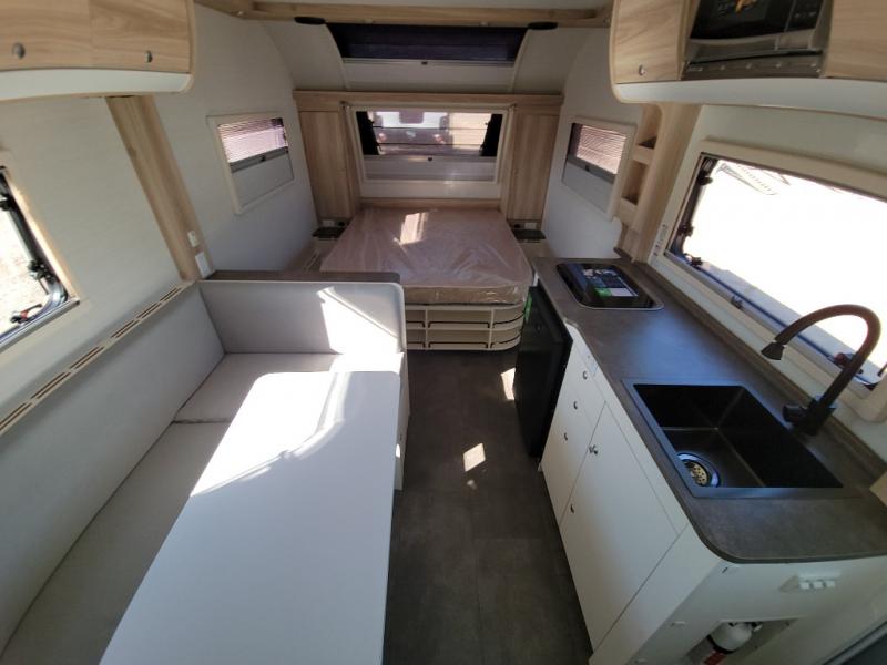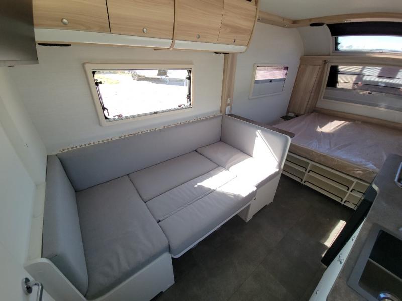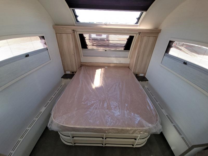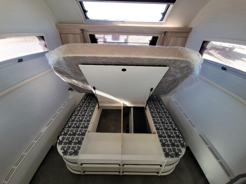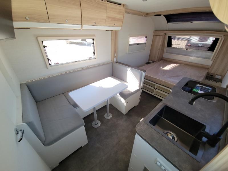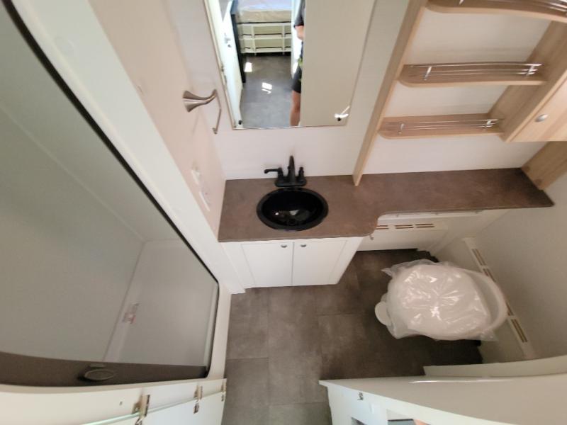 The Haven Travel Trailer is hand-built in Ohio’s Amish country, maximizing comfort and functionality while maintaining premium craftsmanship. Highlights include a walk-around queen bed (with a twin bed floor plan available later this year), an ample dry bath for residential-style convenience, and a large four-person dinette. The open layout features many windows to create a bright and airy feel, making the Haven the perfect “home on the road.”