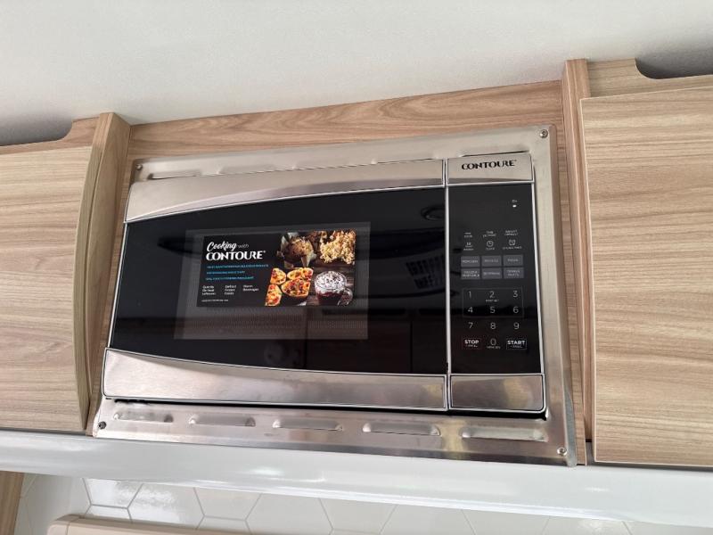 You'll find comfort wherever you camp in this travel trailer! Once you arrive at your campsite, you can unload the pass-through storage, put out the 12' awning, and relax in your camp chairs. There is a two-burner glass stove top and microwave oven inside that will allow you to make lunch for your crew, and there is a 4.6 cu. ft. 12V compressor refrigerator to keep your food fresh. The 4-peson U-shaped dinette will provide a place to dine together and convert to sleeping space for one to two more. Up front, a walk-around queen bed will provide a great night's rest.
