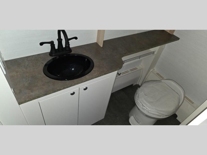 With any Haven travel trailer by nuCamp RV, you can make each destination your home on the road sanctuary! Handcrafted in Ohio's Amish country, you will be pleased with the impeccable craftsmanship and functionality. The Convenience Package features an electric tongue jack with a courtesy light, a roof top solar panel, an external solar port, a backup camera, and a 100Ah 12V lithium battery to keep you powered up. Each model also includes an external LP hook-up, a rear hitch receiver, an XL storage tub, plus an entry door handle and double step for added stability when entering the unit. Inside, you'll enjoy premium soft-close cabinetry, Stargazer windows, composite flooring, and a 24" wide entry door with an integrated screen door to name just a few comforts!