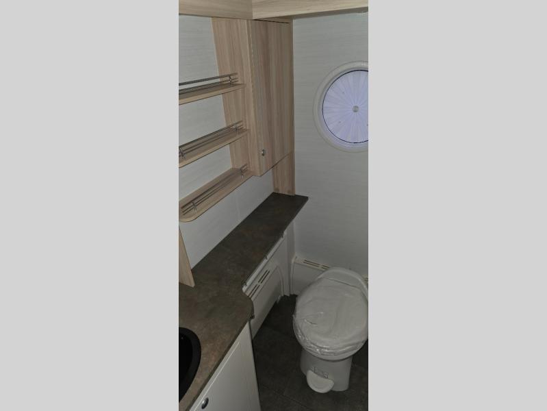 You'll find comfort wherever you camp in this travel trailer! Once you arrive at your campsite, you can unload the pass-through storage, put out the 12' awning, and relax in your camp chairs. There is a two-burner glass stove top and microwave oven inside that will allow you to make lunch for your crew, and there is a 4.6 cu. ft. 12V compressor refrigerator to keep your food fresh. The 4-peson U-shaped dinette will provide a place to dine together and convert to sleeping space for one to two more. Up front, a walk-around queen bed will provide a great night's rest.