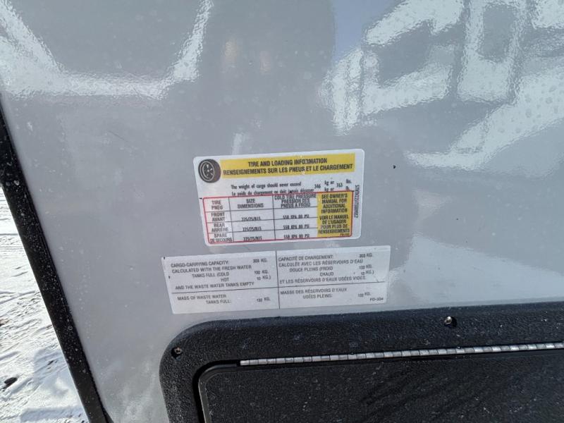 You'll find comfort wherever you camp in this travel trailer! Once you arrive at your campsite, you can unload the pass-through storage, put out the 12' awning, and relax in your camp chairs. There is a two-burner glass stove top and microwave oven inside that will allow you to make lunch for your crew, and there is a 4.6 cu. ft. 12V compressor refrigerator to keep your food fresh. The 4-peson U-shaped dinette will provide a place to dine together and convert to sleeping space for one to two more. Up front, a walk-around queen bed will provide a great night's rest.