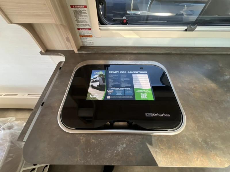 With any Haven travel trailer by nuCamp RV, you can make each destination your home on the road sanctuary! Handcrafted in Ohio's Amish country, you will be pleased with the impeccable craftsmanship and functionality. The Convenience Package features an electric tongue jack with a courtesy light, a roof top solar panel, an external solar port, a backup camera, and a 100Ah 12V lithium battery to keep you powered up. Each model also includes an external LP hook-up, a rear hitch receiver, an XL storage tub, plus an entry door handle and double step for added stability when entering the unit. Inside, you'll enjoy premium soft-close cabinetry, Stargazer windows, composite flooring, and a 24" wide entry door with an integrated screen door to name just a few comforts!