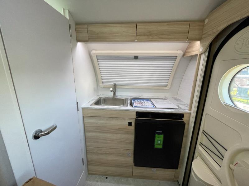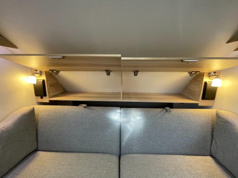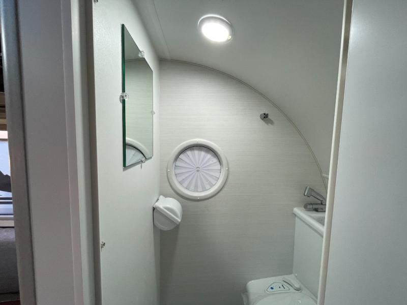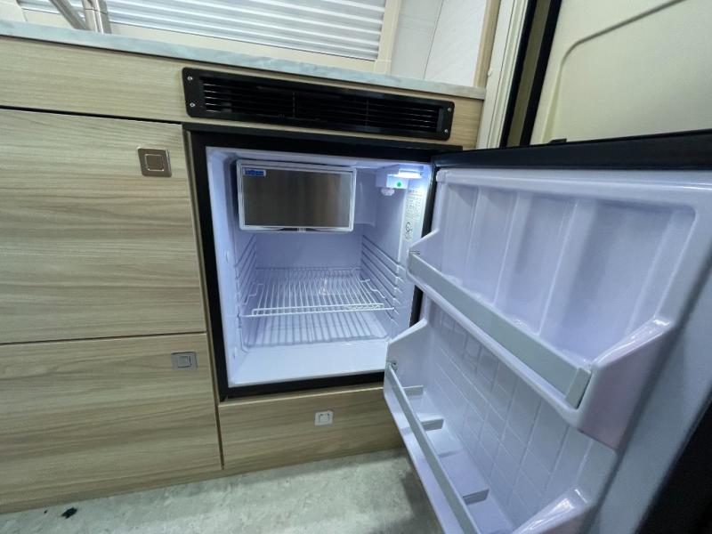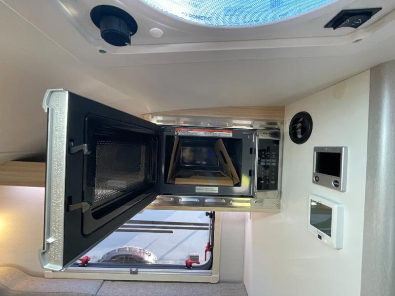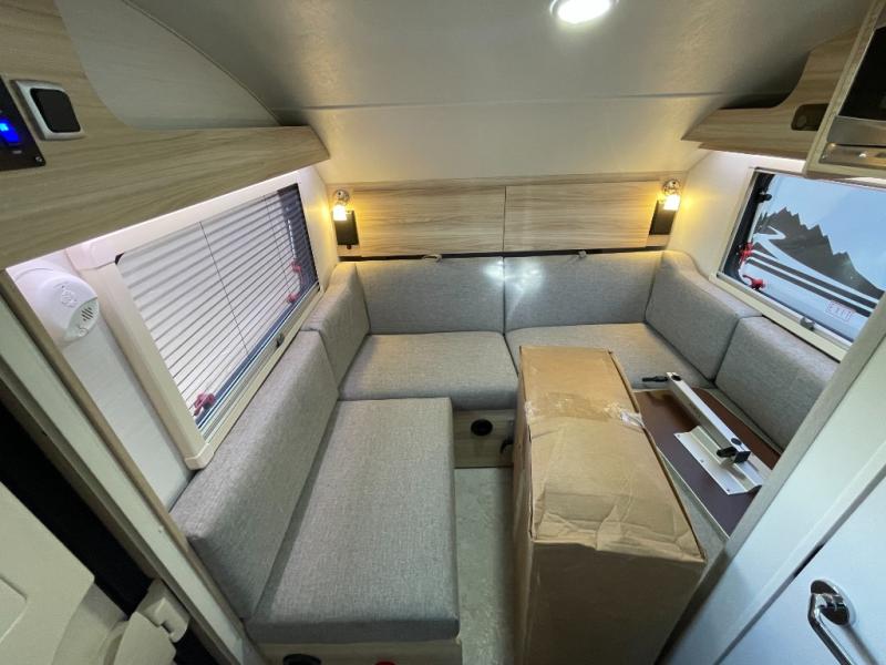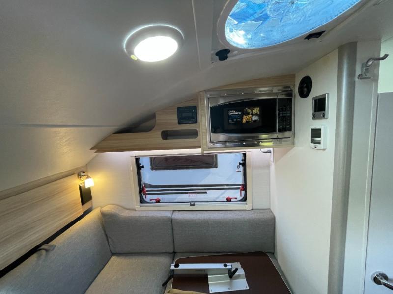 With any TAB 320 teardrop trailer by nuCamp RV, the interior offers premium soft-close cabinetry, a front window, plus a wet bath with a cassette toilet and a molded sink. They are also built with composite flooring and a molded underbelly shield for protection against rock and debris during your journeys. The iconic teardrop design offers an easy-to-tow unit with amenities found in much bigger trailers. Some other highlights include the Alde heating/hot water system, the central air conditioner, 180-watt solar panel, and the Nautilus water system with an external shower.
