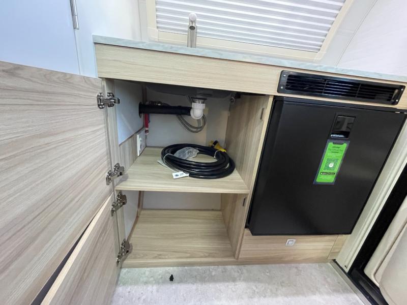 Whether you make plans or enjoy last-minute trips, this trailer offers all the essentials for a perfect weekend! There is an interior kitchen, wet bath, and dinette that offers seating and sleeping space. And the wet bath or the external shower will keep you clean and refreshed while camping. The optional Black Canyon Upgrade is available with this model, which offers dual 190-watt solar panels, holding tank heaters, XL diamond plate storage tub and underglow lights. If the Black Canyon Upgrade is chosen, the hitch weight will be 208 lbs. and the dry weight will be 2,109 lbs.; see dealer for more details!