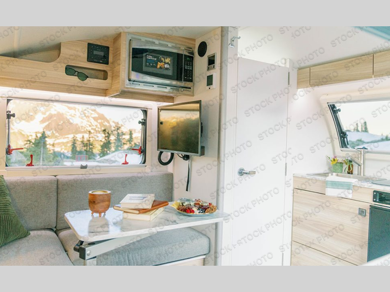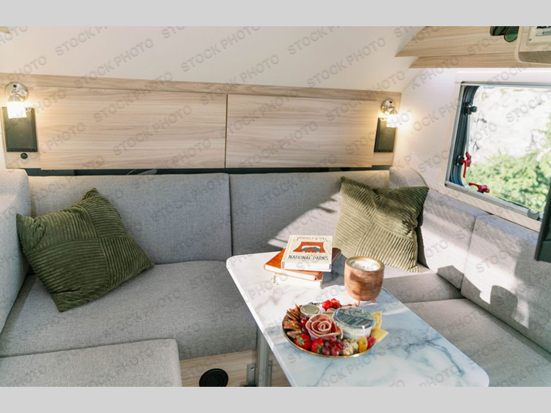 With any TAB 320 teardrop trailer by nuCamp RV, the interior offers premium soft-close cabinetry, a front window, plus a wet bath with a cassette toilet and a molded sink. They are also built with composite flooring and a molded underbelly shield for protection against rock and debris during your journeys. The iconic teardrop design offers an easy-to-tow unit with amenities found in much bigger trailers. Some other highlights include the Alde heating/hot water system, the central air conditioner, 180-watt solar panel, and the Nautilus water system with an external shower.